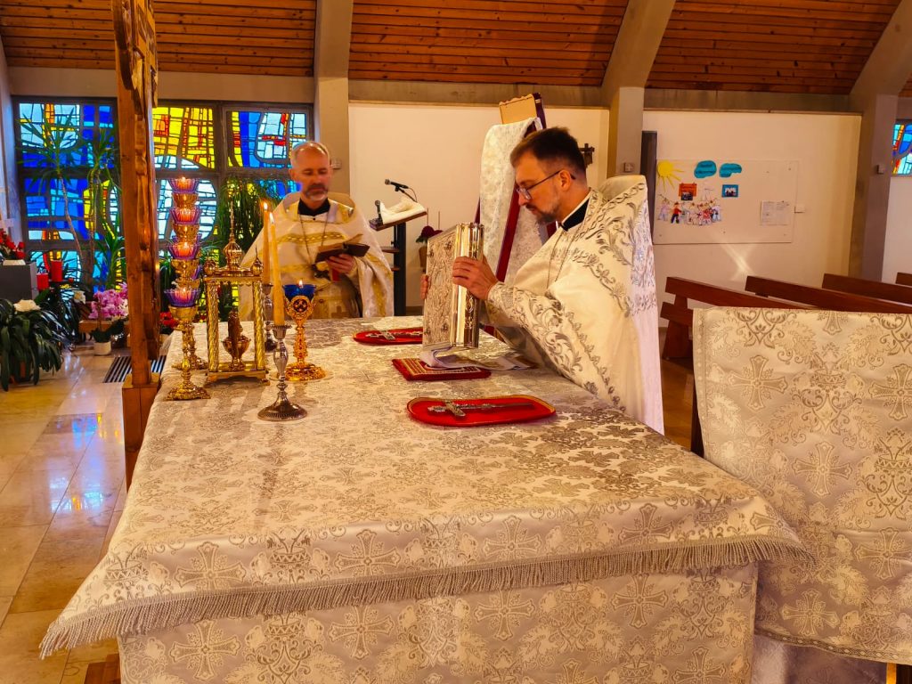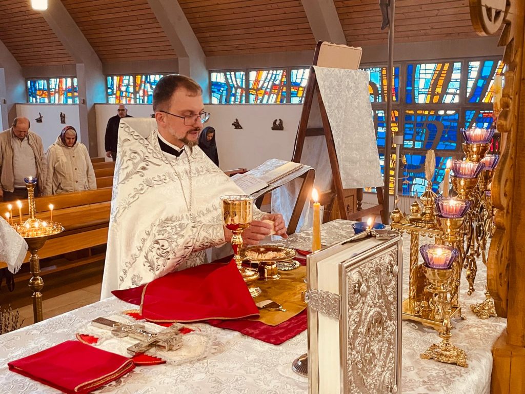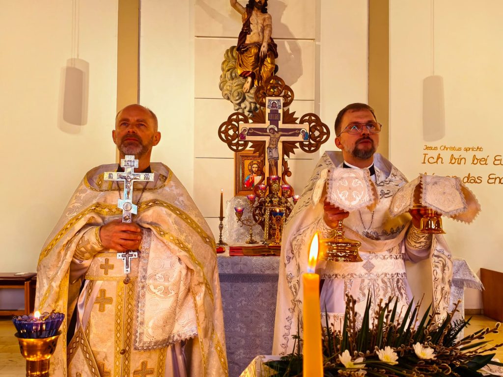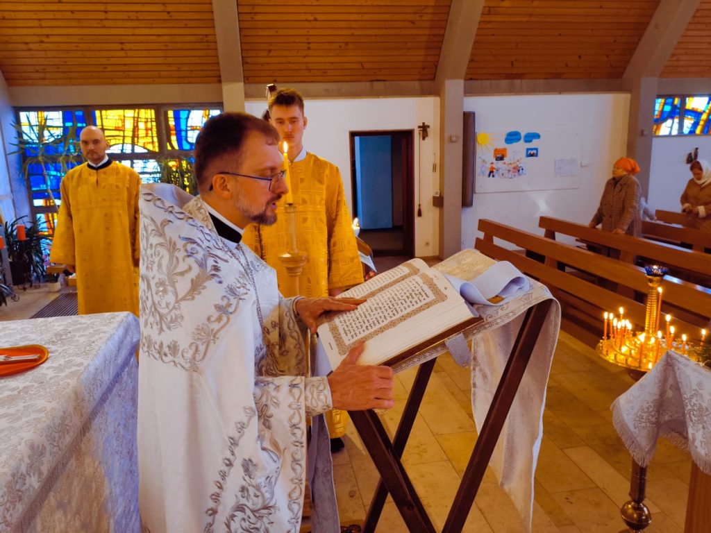 Божественную литургию, по благословению настоятеля игумена Максима (Шмидт), совершил иерей Валентин Усачёв (г. Ульм) в сослужении протоиерея Анатолия Москаленко. Богослужебные песнопения исполнил приходской хор под управлением Марины Мецлер.