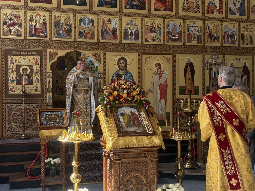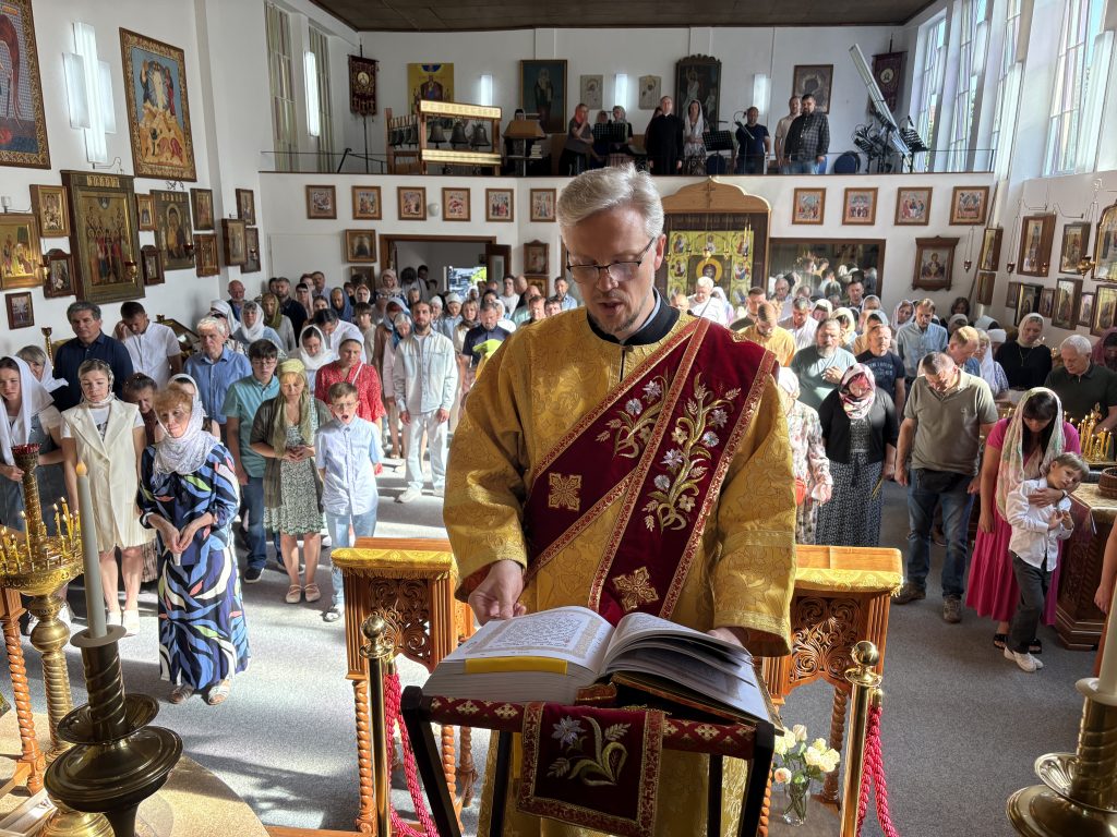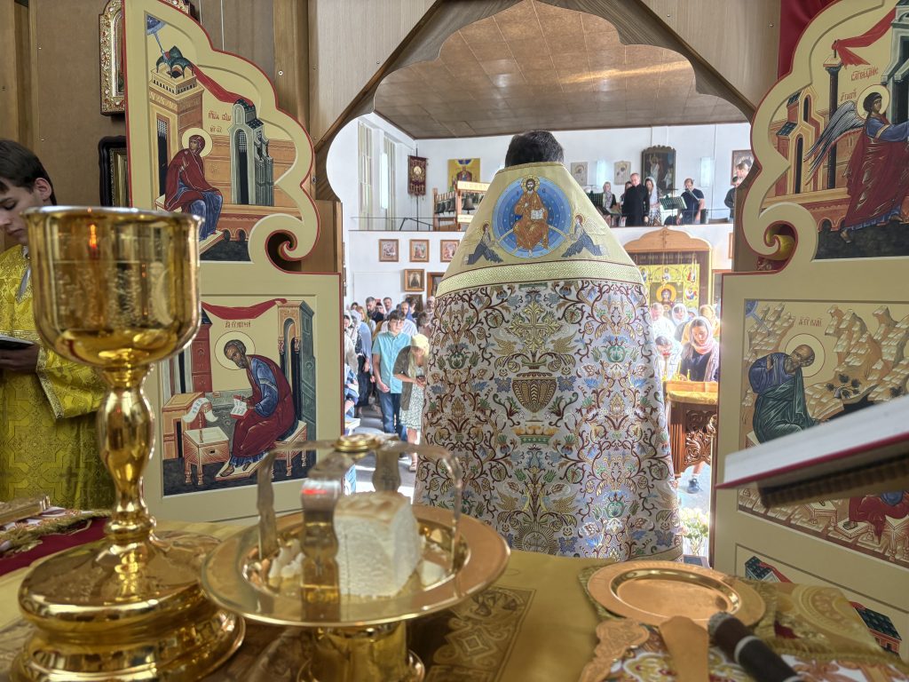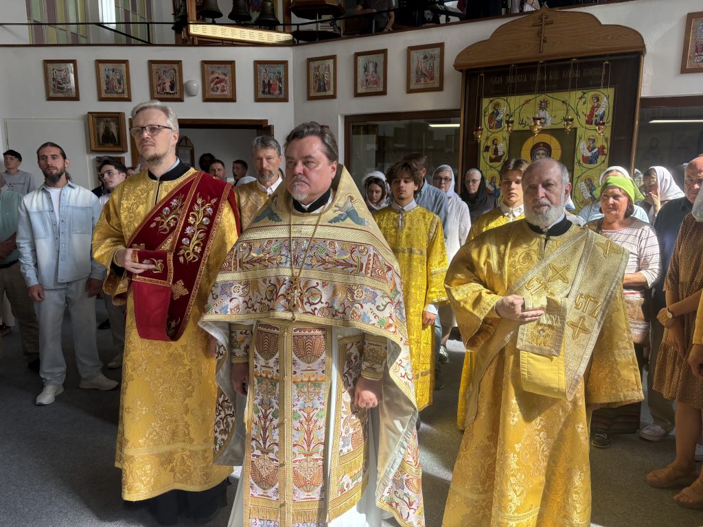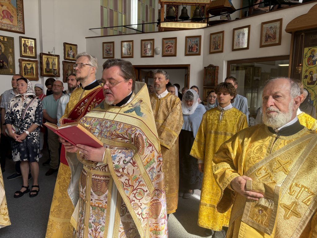 Праздничную Божественную литургию возглавил игумен Максим (Шмидт) в сослужении протодиакона Антония Смолина и диакона Сергия Гофсеца. Богослужебные песнопения исполнил приходской хор под руководством регента чтеца Николая Шилинцева.