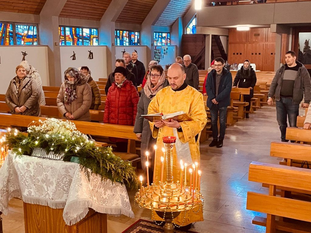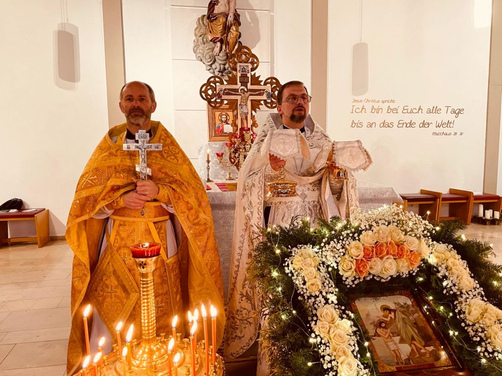 18 января с. г., Навечерие Богоявления (Крещенский сочельник), в приходе Сретения Господня г. Алена состоялась Божественная литургия. По благословению настоятеля ее совершил иерей Валентин Усачёв (г. Ульм) в сослужении протоиерея Анатолия Москаленко.