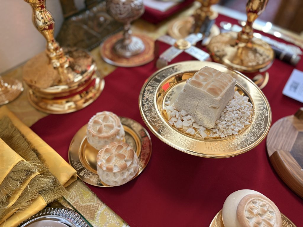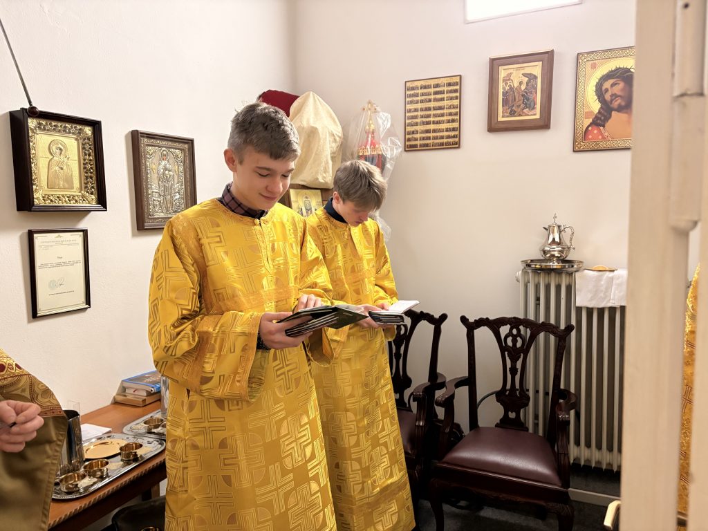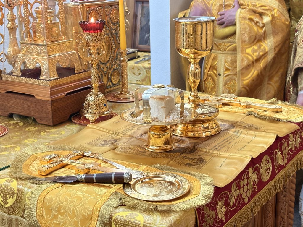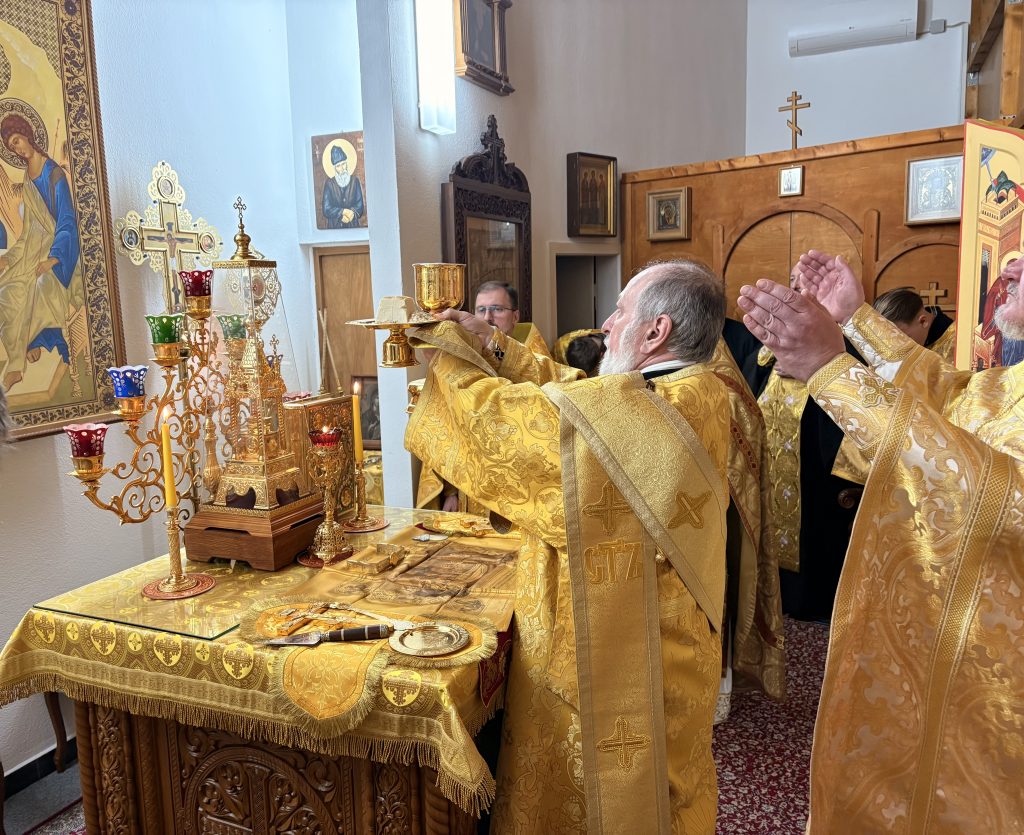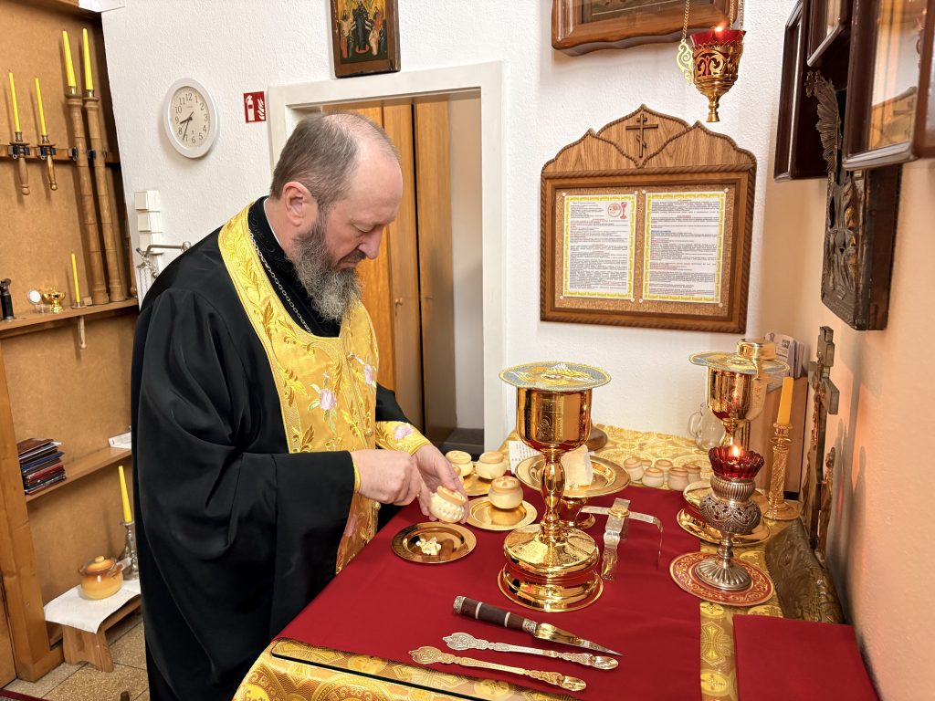 За литургией в алтаре молился и причастился Святых Христовый Тайн Его Высокопреосвященство, архиепископ Усть-Каменогорский и Семипалатинский Амфилохий, находящийся с поездкой в Германии.