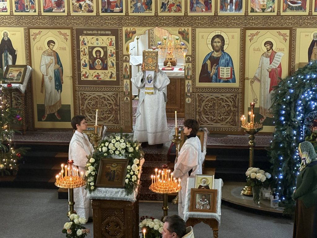 Божественную литургию совершил настоятель игумен Максим (Шмидт) в сослужении протоиерея Григория Крочака, иерея Валентина Усачёва, протодиакона Антония Смолина, диаконов Сергия Гофсеца и Евгения Кика. Богослужебные песнопения исполнил клиросный хор под руководством регента Ларисы Шукман.