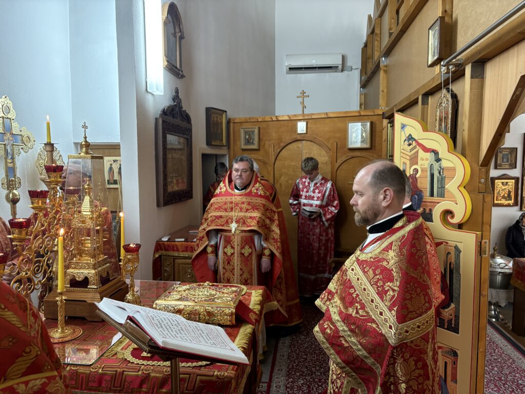 Воскресную Божественную литургию, по благословению настоятеля, возглавил протоиерей Григорий Крочак. Ему сослужили игумен Максим (Шмидт), диаконы Сергий Гофсец и Евгений Кик. Богослужебные песнопения исполнил мужской состав приходского хора под руководством регента чтеца Николая Шилинцева.