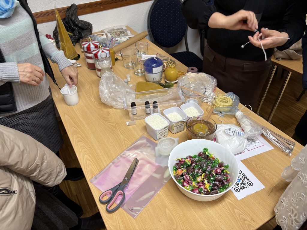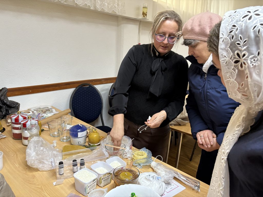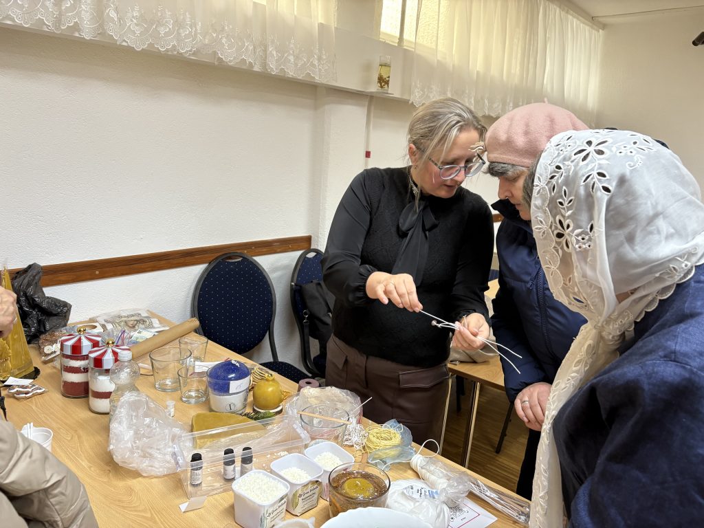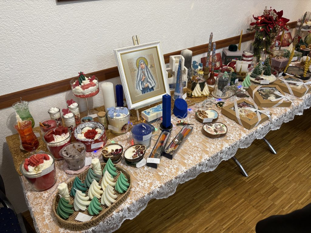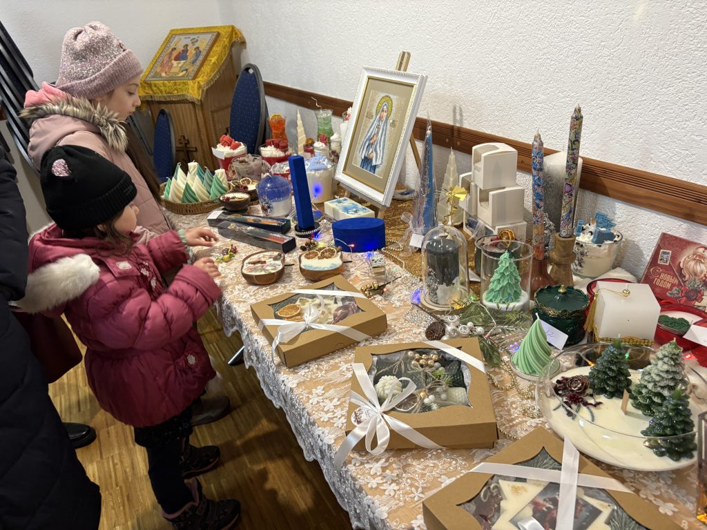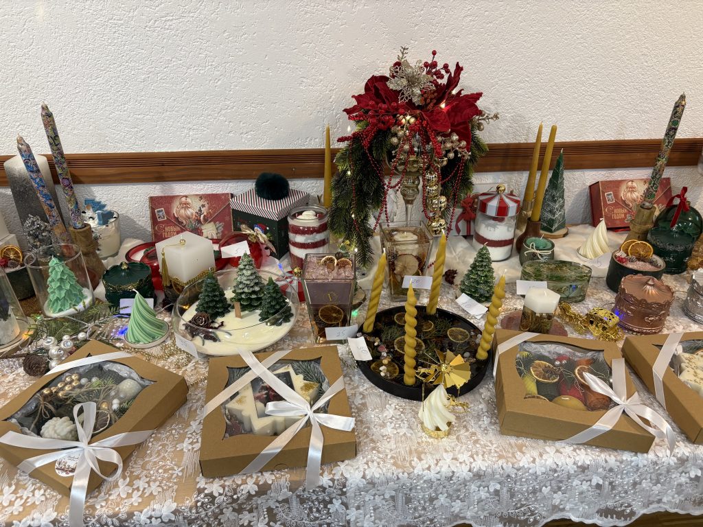 7 декабря с.г. в приходских помещениях Знаменского храма состоялась выставка творческих работ прихожанки Юлианы Марандичи. В преддверии светлого праздника Рождества Христова были представлены новые авторские изделия из воска, дополненные тонкой бисерной инкрустацией и элементами ручной вышивки. Особое внимание посетителей привлекли рождественские композиции и праздничные наборы, которые могут стать душевным подарком к церковным торжествам.