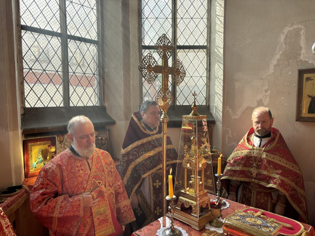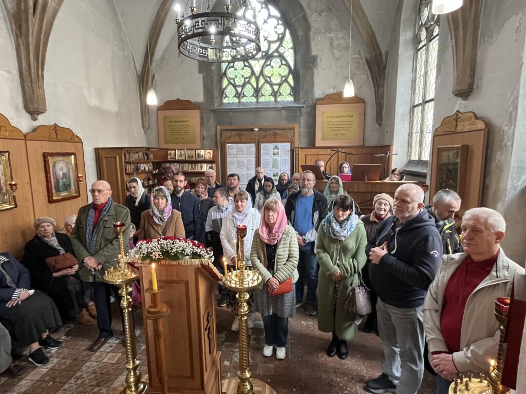 Праздничную Божественную литургию в исторической часовне свв. мчч. Валентина и Пасикрата возглавил настоятель прихода игумен Максим (Шмидт) в сослужении клириков общины. За литургией пел приходской клиросный хор под руководством регента Виктории Исламовой.