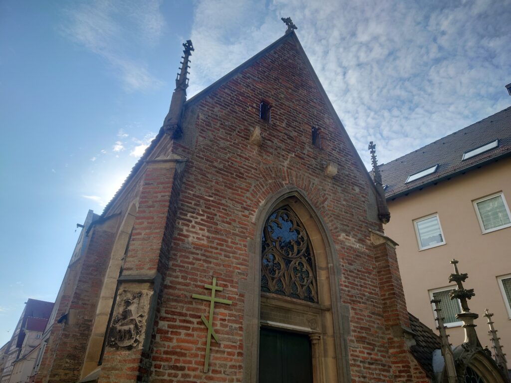 Эта маленькая часовня наполнена каким-то огромным смыслом для каждого из тех, кто хоть раз в жизни с ней соприкоснулся. Несмотря на то, что она стоит в центре города, её, может быть, с первого раза даже и не увидишь, особенно в тени огромного величественного Ульмского собора. Но на самом деле судьба этой часовни не может не поражать. За свою многовековую историю этот маленький храм неоднократно подвергался опасности разрушения, разорения. С самого начала, когда он был построен на месте бывшего монастыря, то был задуман как усыпальница, как склеп для благочестивой христианской семьи, но потом обстоятельства изменились, пришли другие люди власть имущие, и часовня стала мешать, особенно здесь, в центре города. Её начали использовать совершенно не по назначению, не для молитвы – она использовалась как склад соли, сала, для хранения разных принадлежностей, для художественной мастерской. Художник Маух выкупил часовню за гроши, чтобы только её не разрушили. И благодаря ему мы сейчас можем здесь молиться.
