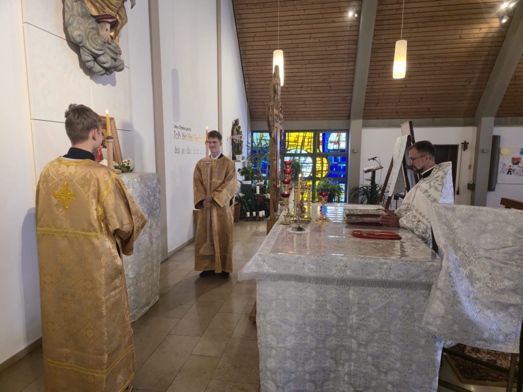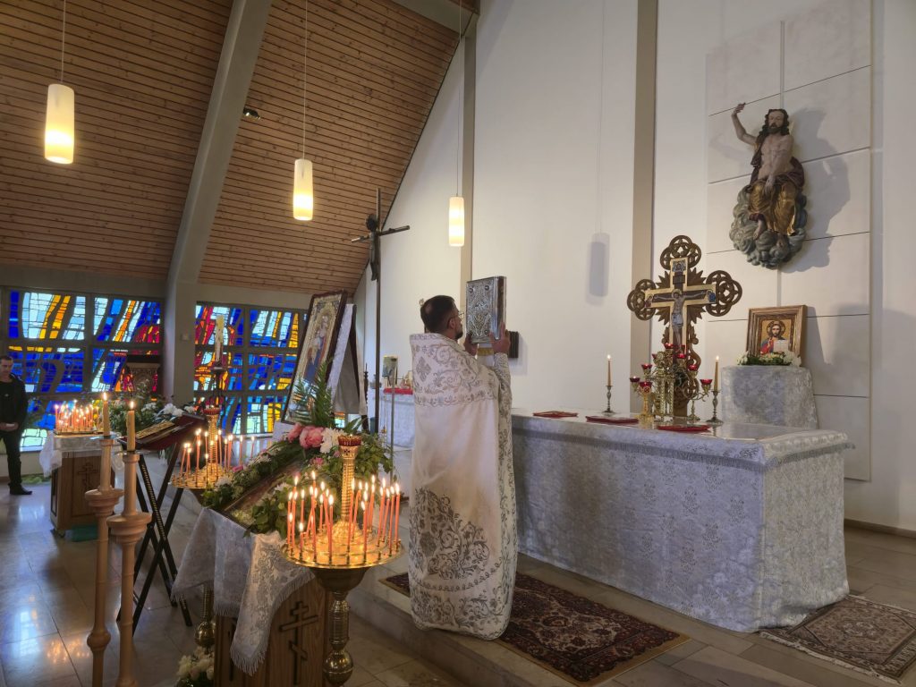 Богослужение по благословению настоятеля совершил иерей Валентин Усачёв. Богослужебные песнопения исполнил приходской хор под руководством регента Марины Мецлер.