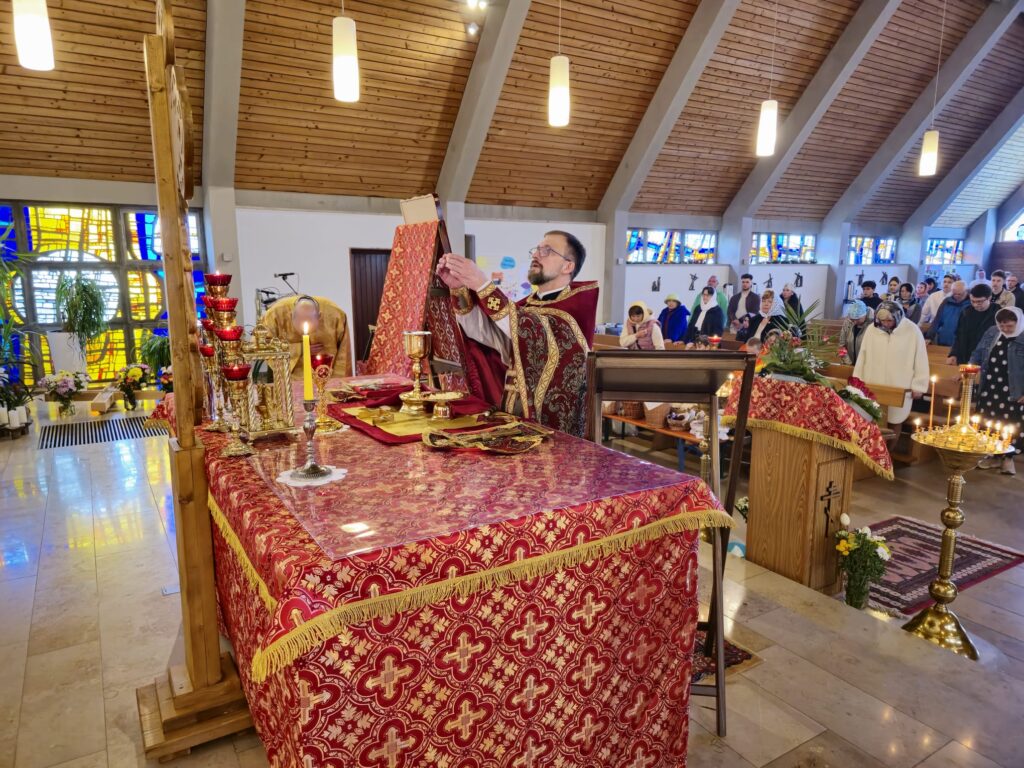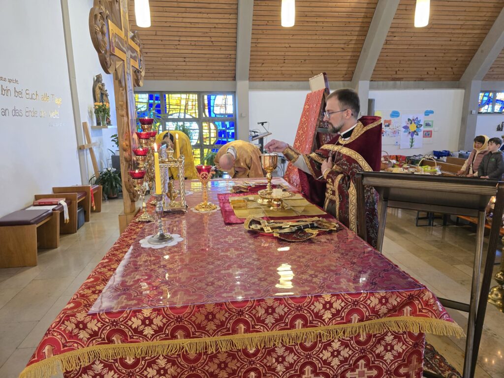 В светлый праздник Воскресения Христова, 20 апреля с. г., в приходе Сретения Господня г. Алена состоялась Пасхальная Божественная литургия. Праздничное богослужение, по благословению настоятеля, совершил иерей Валентин Усачёв (г. Ульм).