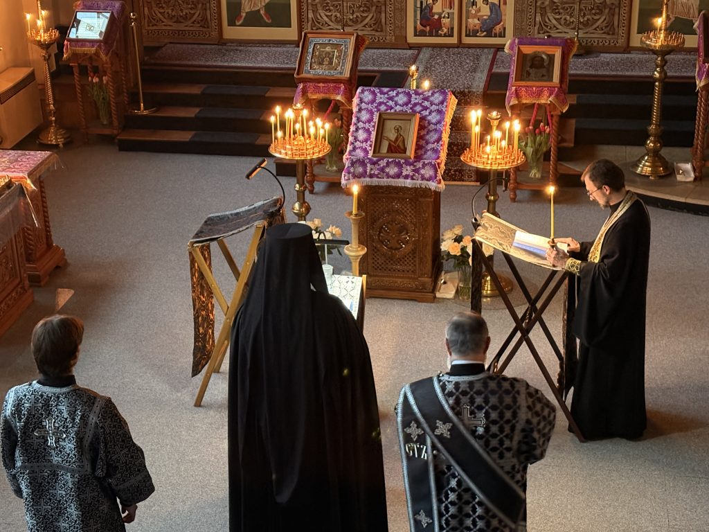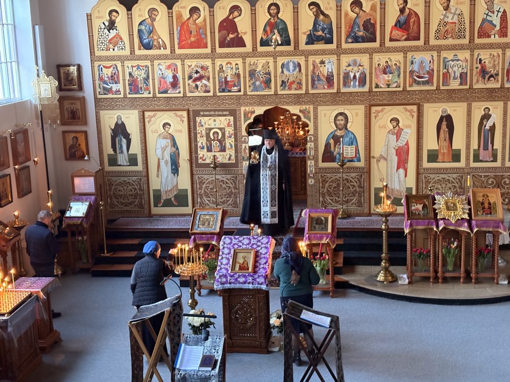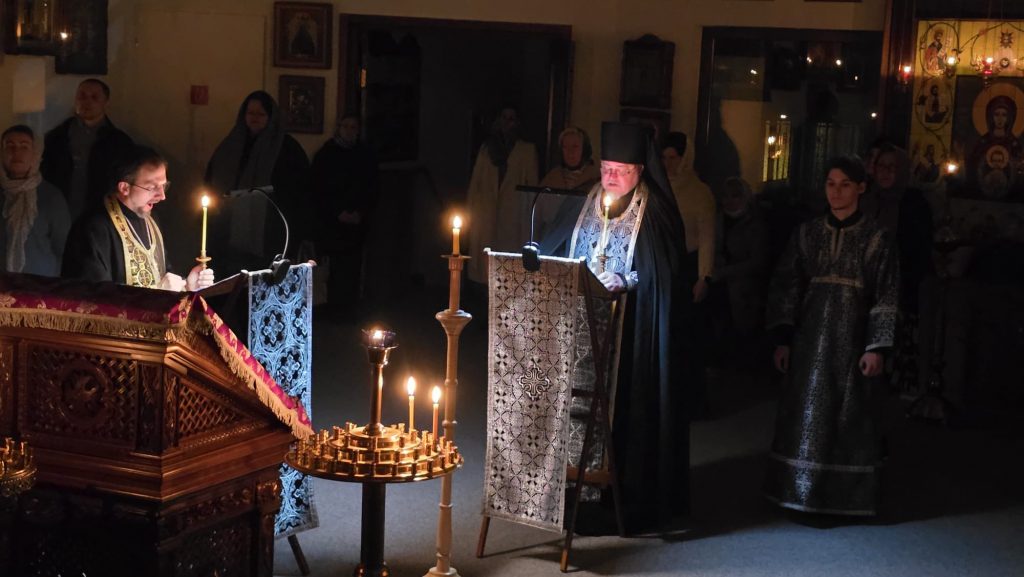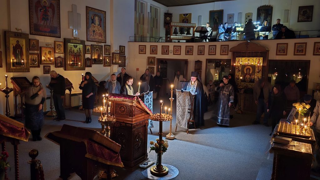 Богослужение совершил игумен Максим (Шмидт) в сослужении иерея Валентина Усачёва и диакона Сергия Гофсеца.