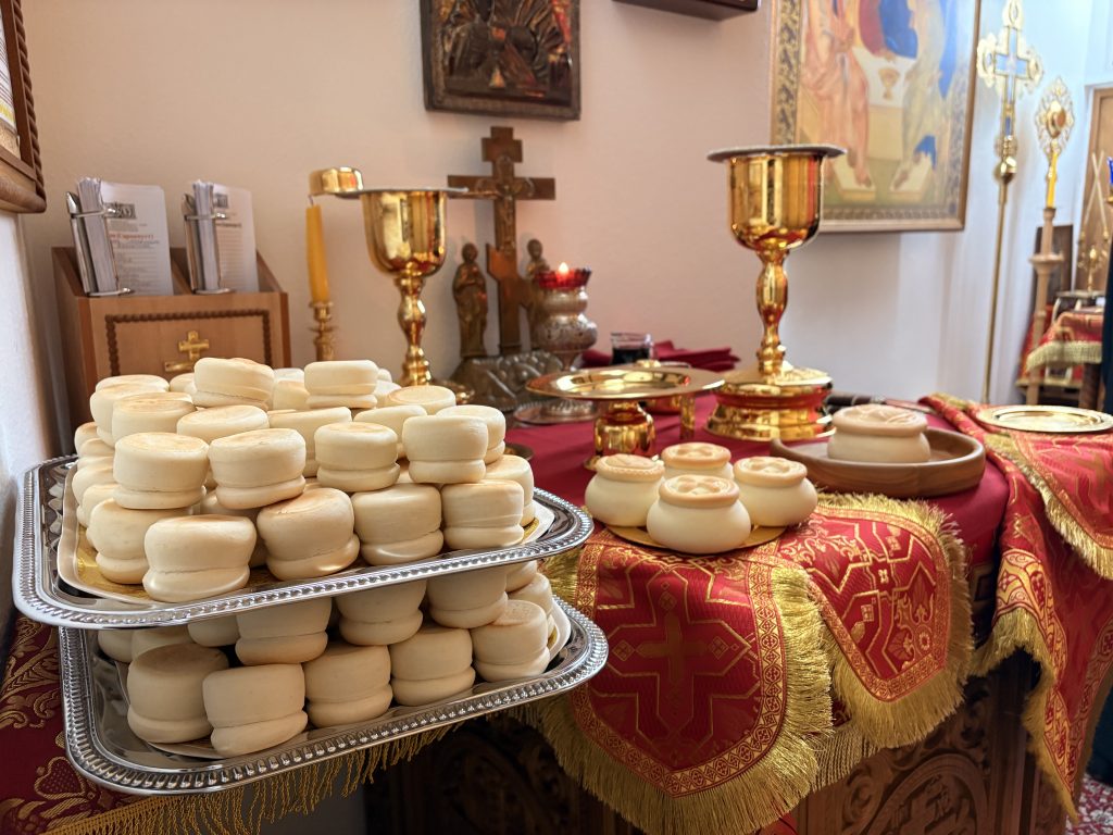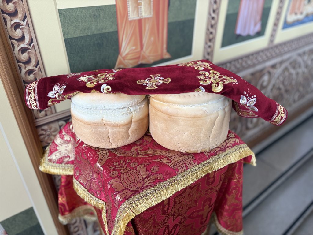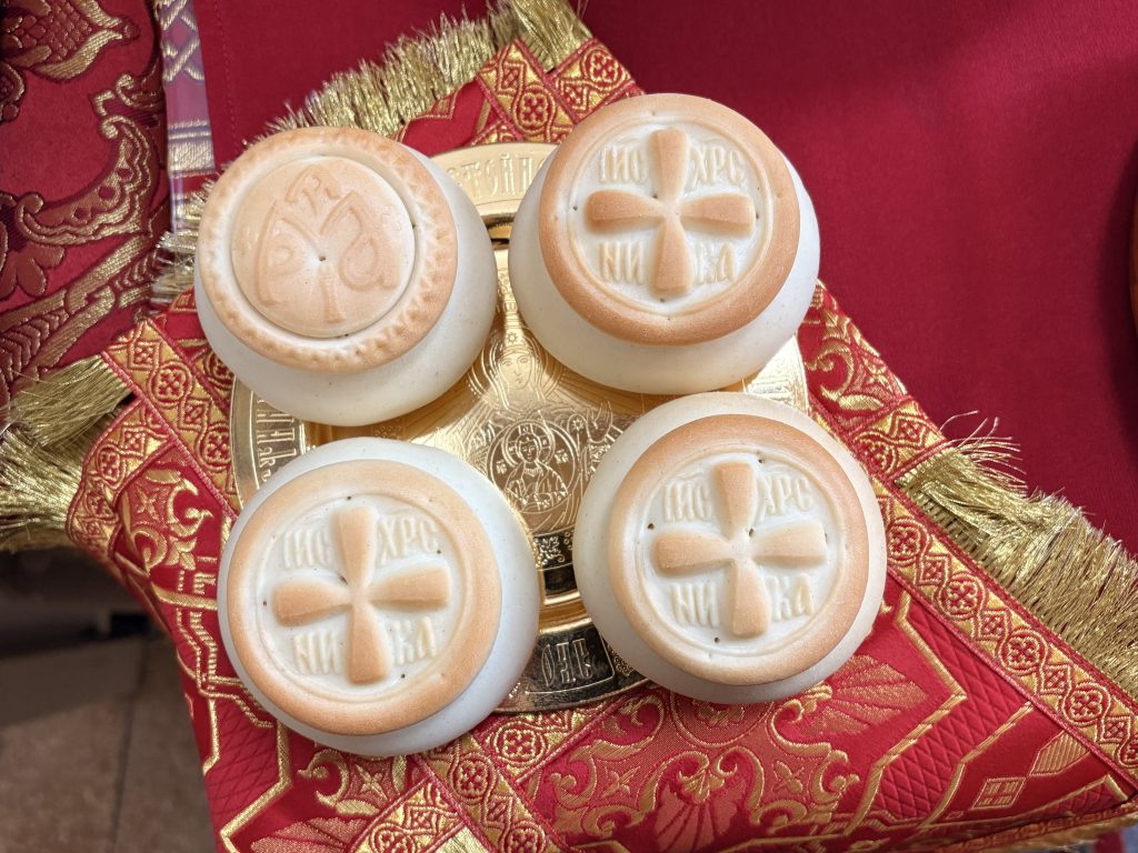 При целовании Креста верующим раздали кусочки артоса – освященного на Пасху хлеба, положенного на всю Светлую седмицу около Царских врат, благословленного и раздробленного с особой молитвой.
