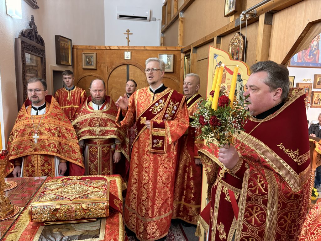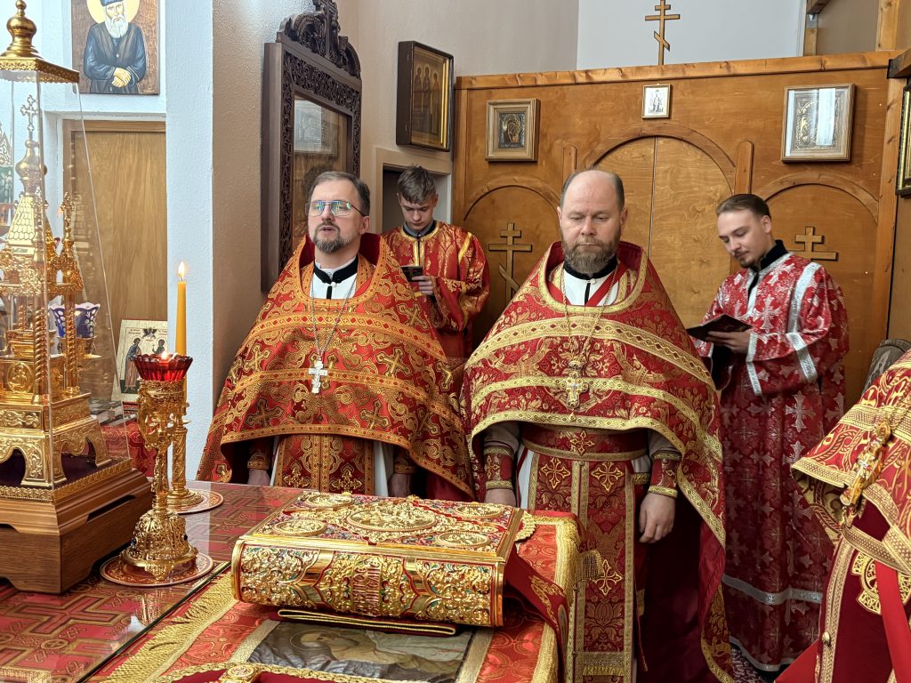 Богослужения возглавил игумен Максим (Шмидт). Настоятелю сослужили протоиерей Григорий Крочак, иерей Валентин Усачёв, протодиакон Антоний Смолин и диакон Сергий Гофсец. За богослужением пел клиросный хор под руководством регента Ларисы Шукман.