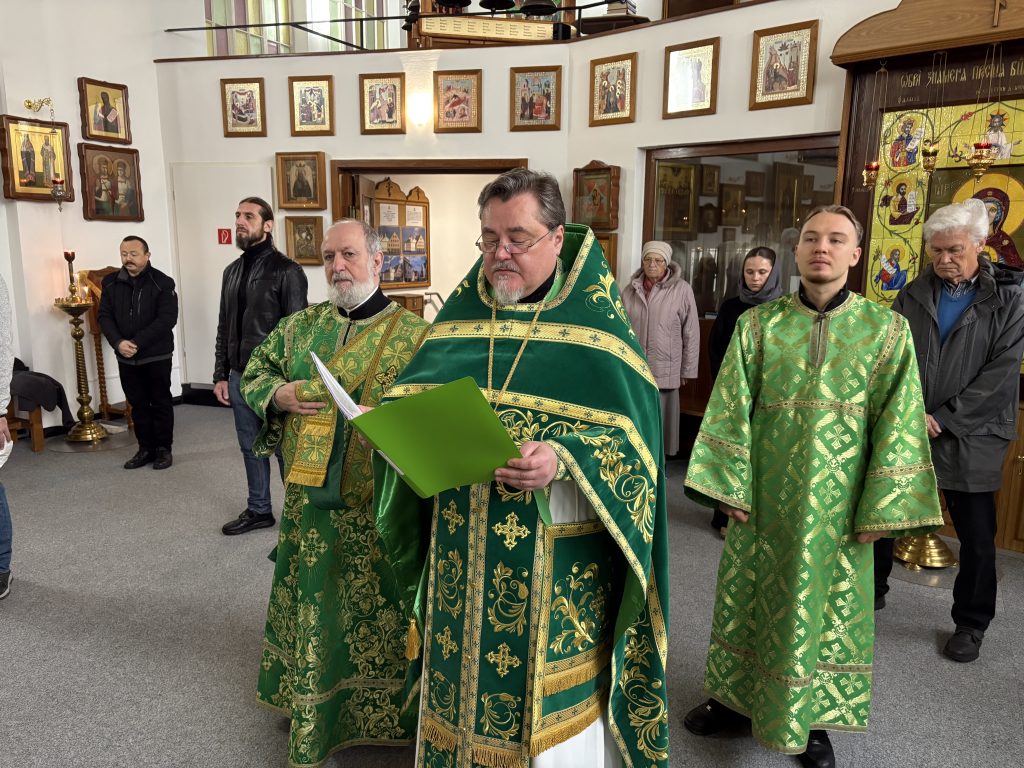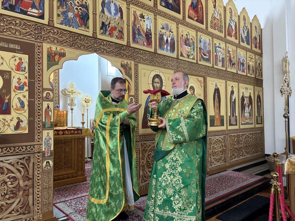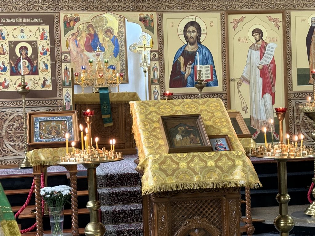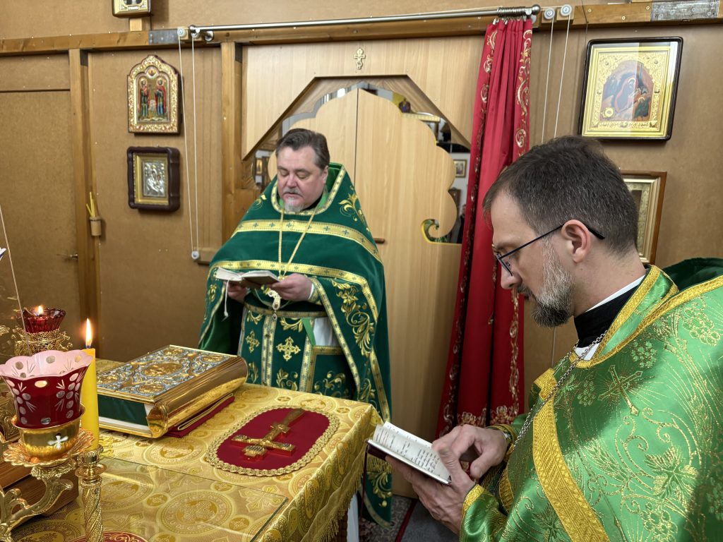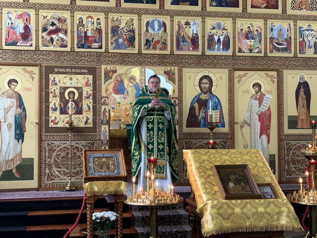 Праздничную Божественную литургию возглавил игумен Максим (Шмидт) в сослужении иерея Валентина Усачёва и диакона Сергия Гофсец. За богослужением пел клиросный хор под руководством регента Ларисы Шукман.