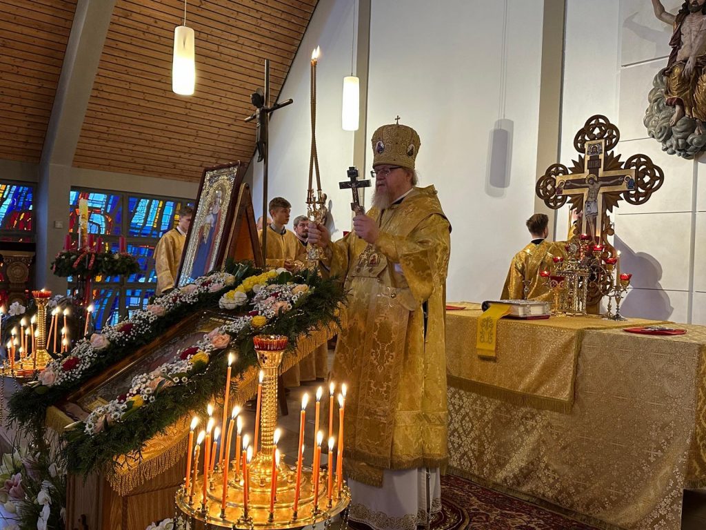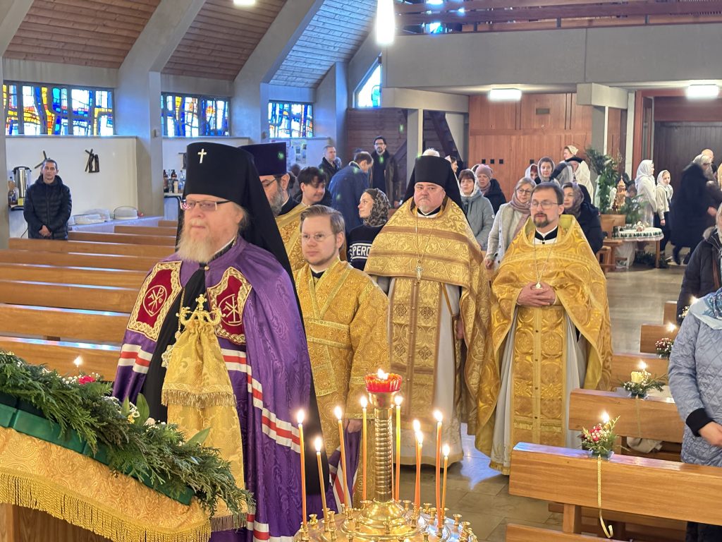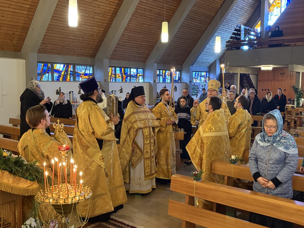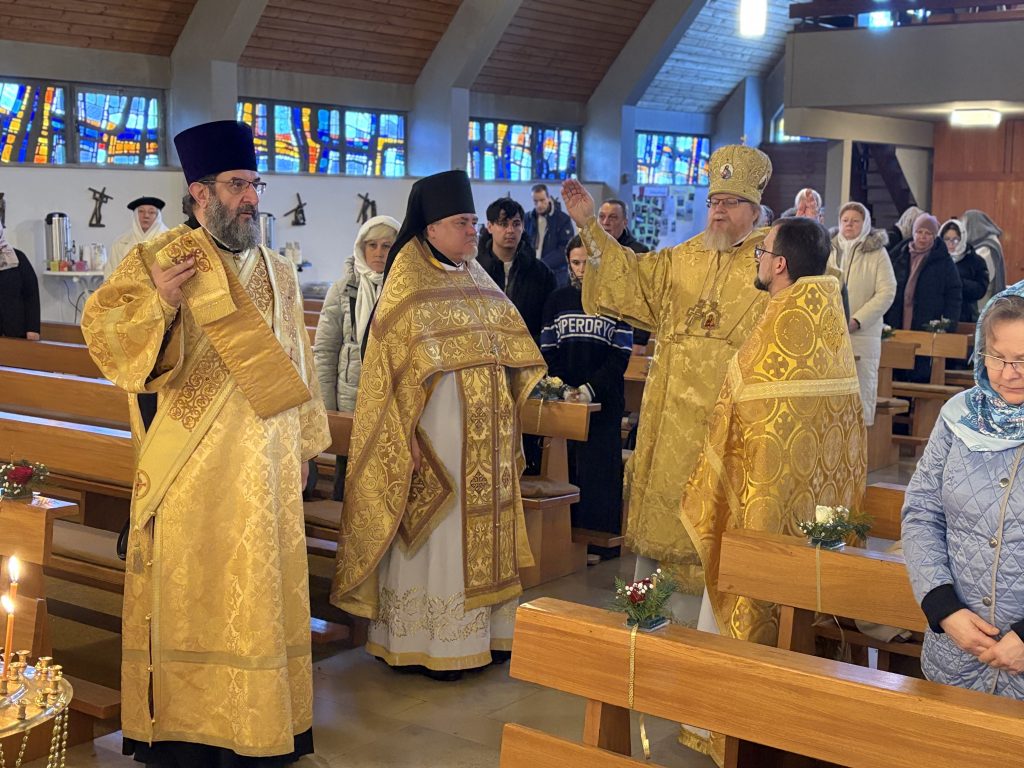 Его Высокопреосвященству сослужили настоятель прихода игумен Максим (Шмидт), иерей Валентин Усачев, протодиакон Арчил Чхиквадзе.