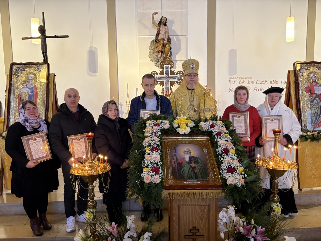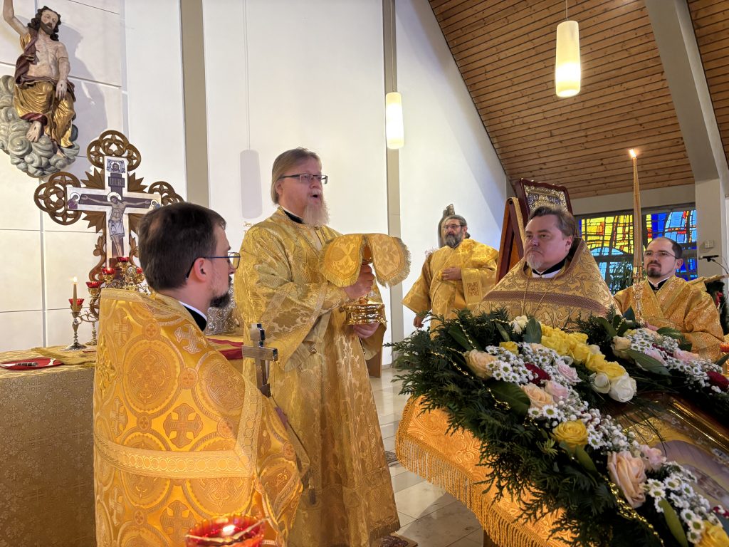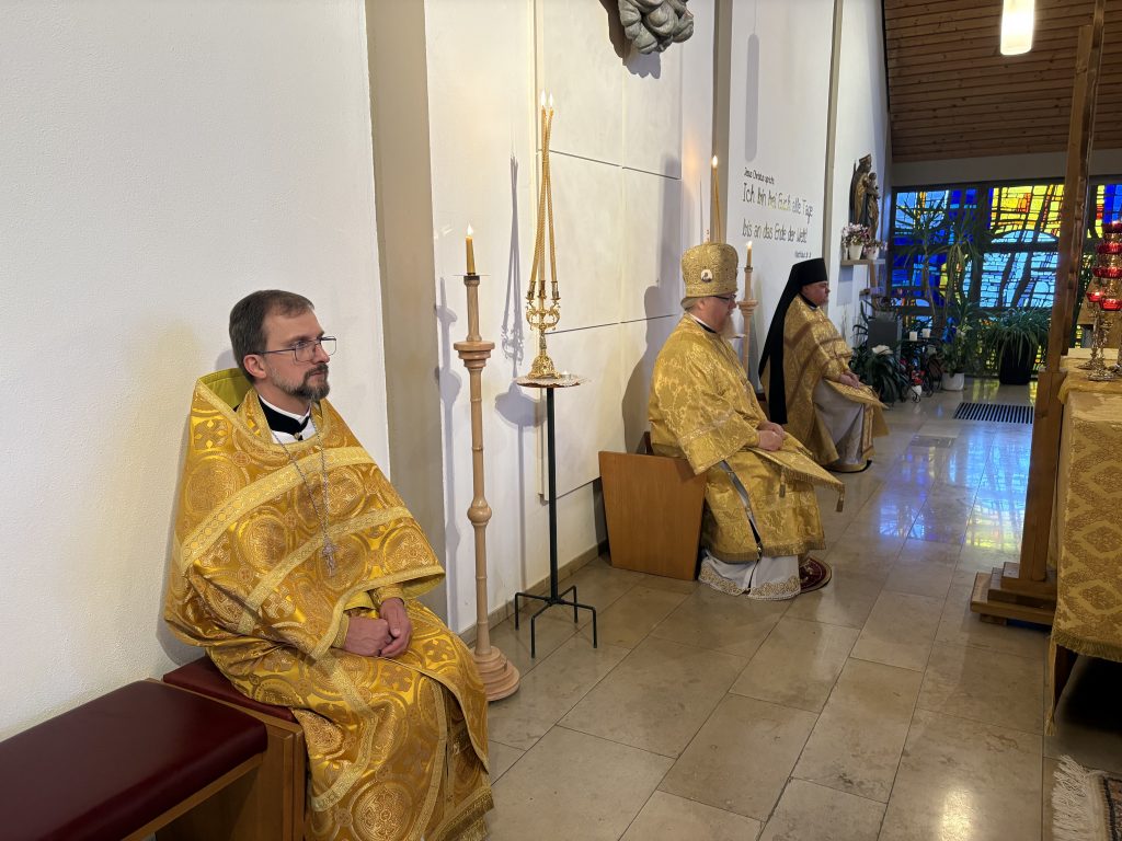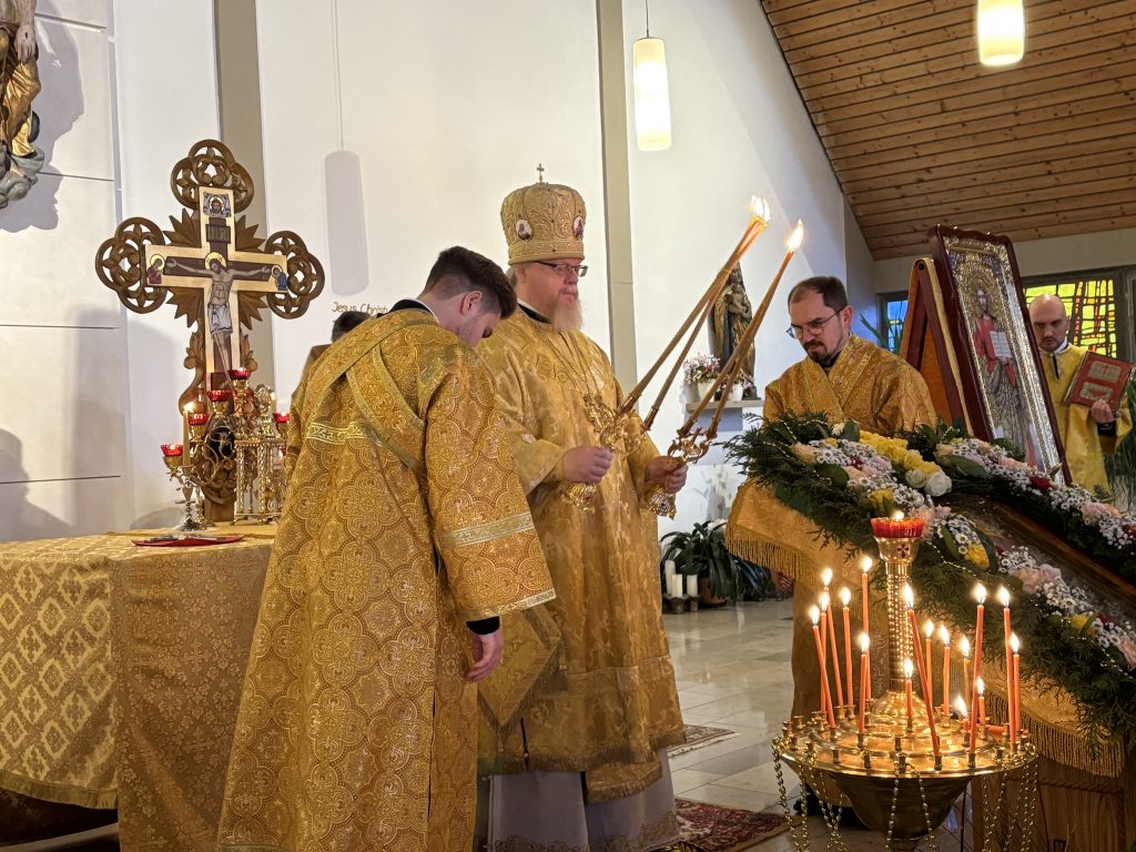 Его Высокопреосвященству сослужили настоятель прихода игумен Максим (Шмидт), иерей Валентин Усачев, протодиакон Арчил Чхиквадзе.