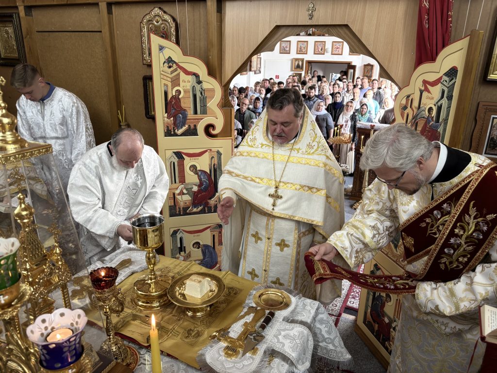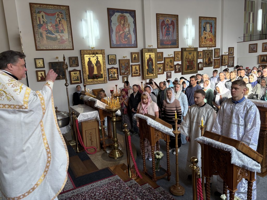 Воскресную Божественную литургию возглавил игумен Максим (Шмидт) в сослужении протоиерея Григория Крочака, протодиакона Антония Смолина и диакона Сергия Гофсеца. Богослужебные песнопения исполнил приходской хор под руководством регента Кирилла Заварзина.