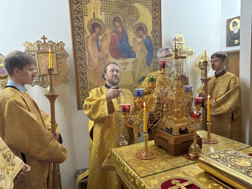 Божественную литургию совершил игумен Максим (Шмидт) в сослужении протоиерея Григория Крочака, иерея Валентина Усачёва, протодиакона Антония Смолина, диаконов Сергия Гофсеца и Евгения Кика. Богослужебные песнопения исполнил приходской хор под руководством регента Кирилла Заварзина.