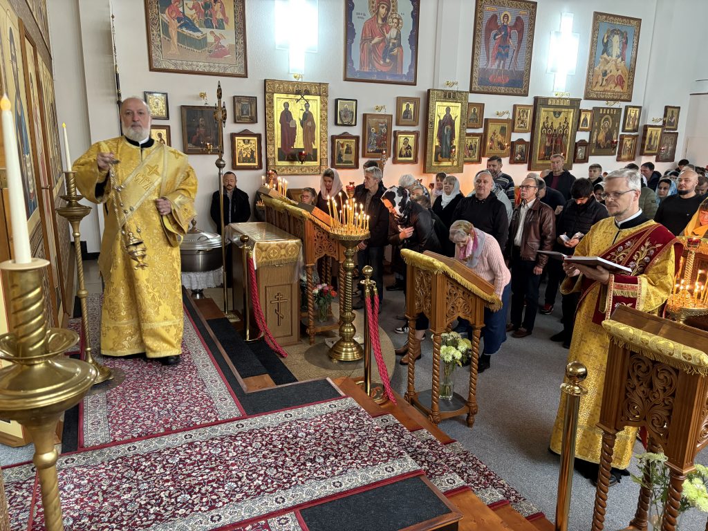 Свою проповедь о. Максим посвятил евангельской теме. По окончании богослужения настоятель поздравил с днем рождения пономаря Ивана Козович и регента клиросного хора Викторию Исламову.
