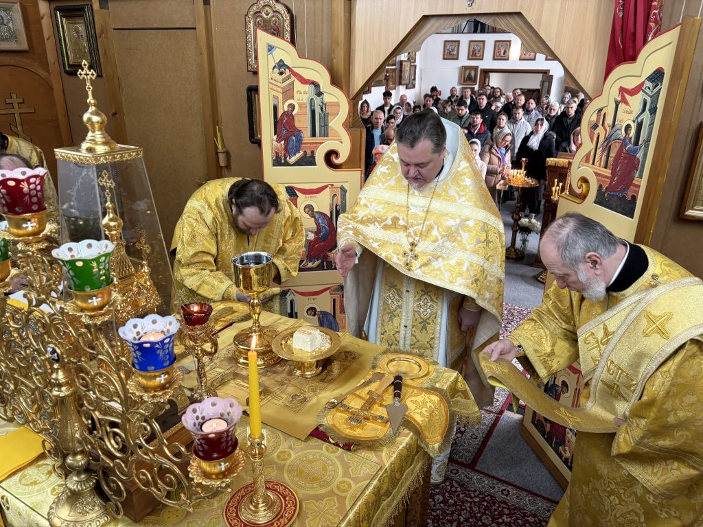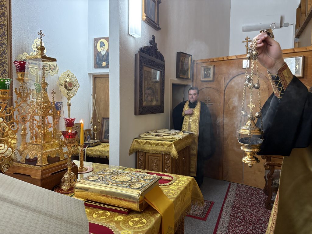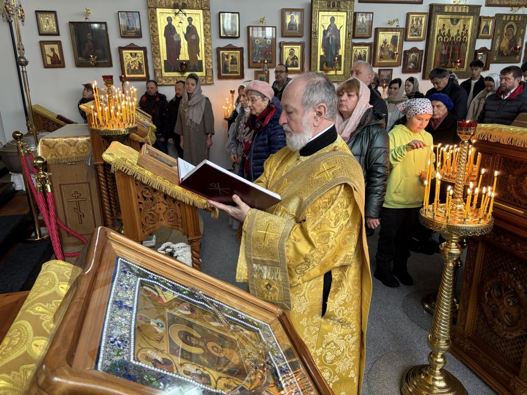 Божественную литургию совершил игумен Максим (Шмидт) в сослужении протоиерея Григория Крочака, диаконов Сергия Гофсеца и Евгения Кика. Богослужебные песнопения исполнил приходской хор под руководством регента Кирилла Заварзина.