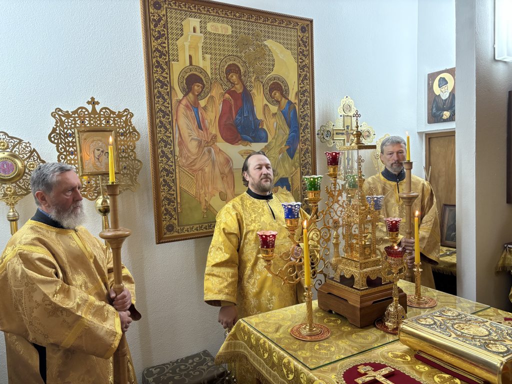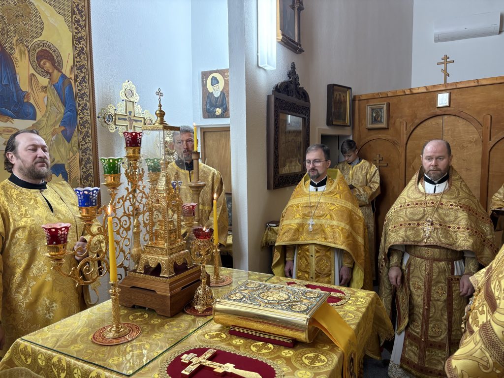 Божественную литургию совершил игумен Максим (Шмидт) в сослужении протоиерея Григория Крочака, иерея Валентина Усачёва, диаконов Сергия Гофсеца и Евгения Кика. Богослужебные песнопения исполнил мужской состав приходского хора под руководством регента протодиакона Антония Смолина.