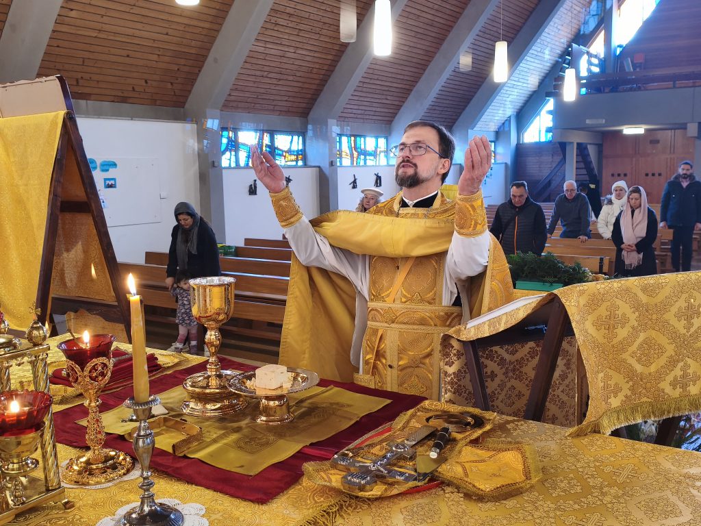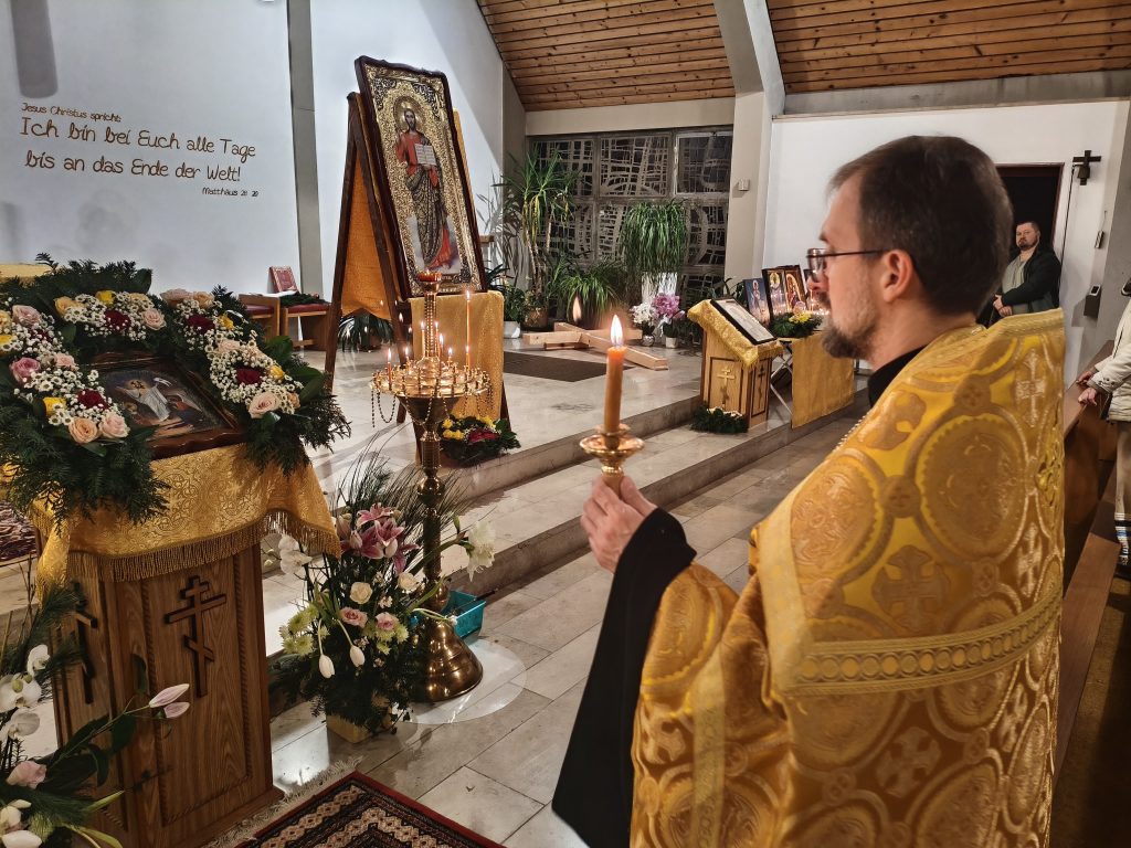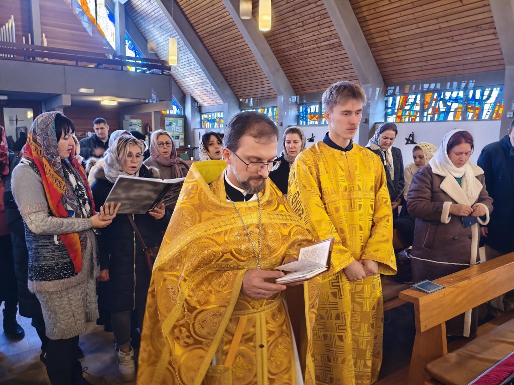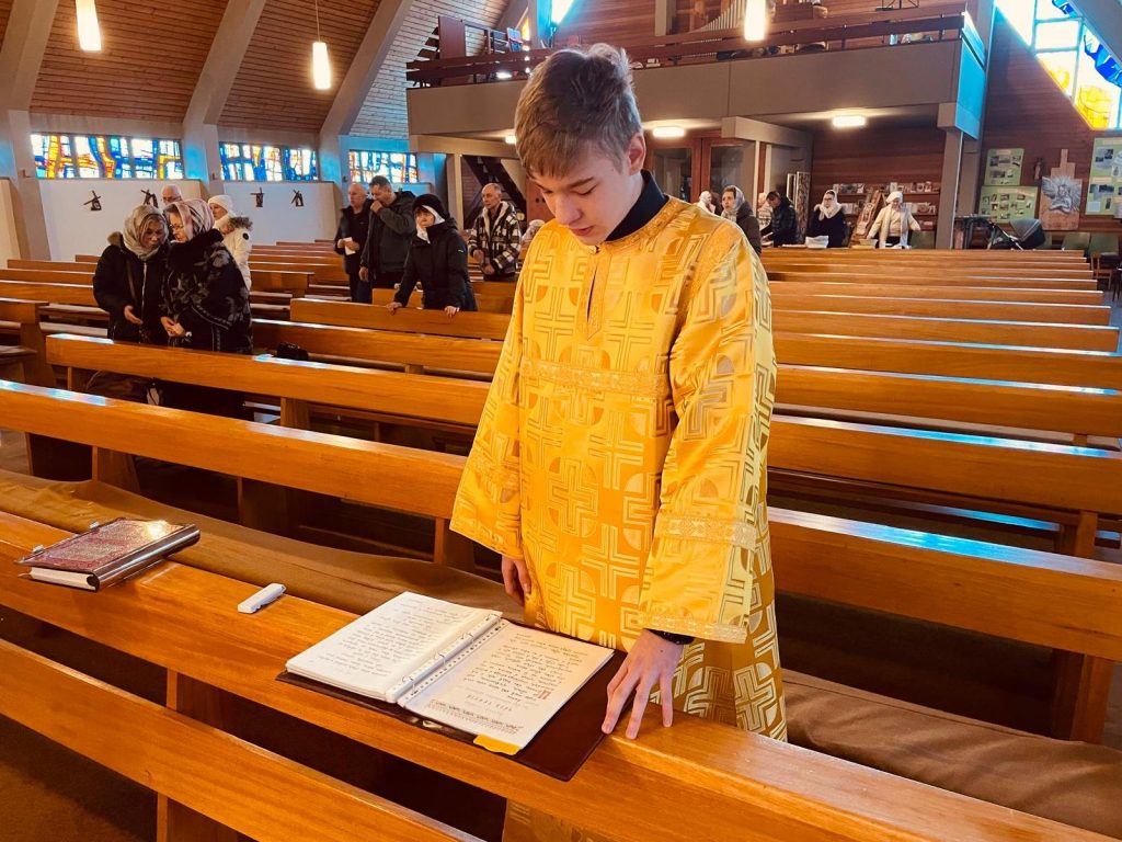 Богослужебные песнопения исполнил приходской хор под управлением регента Марины Мецлер. Свою проповедь о. Валентин посвятил Евангельскому чтению.