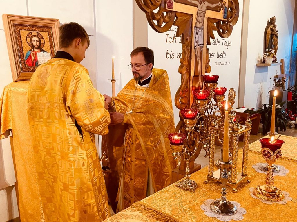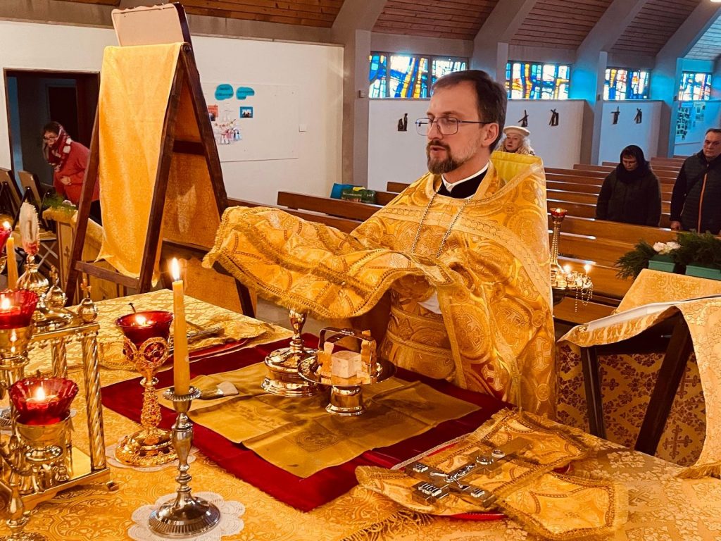 21 декабря с. г., в Неделю 28-ю по Пятидесятнице, в приходе Сретения Господня г. Алена была совершена Божественная литургия. По благословению настоятеля богослужение возглавил иерей Валентин Усачёв (г. Ульм).