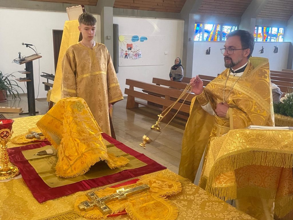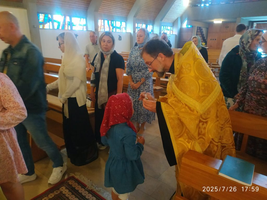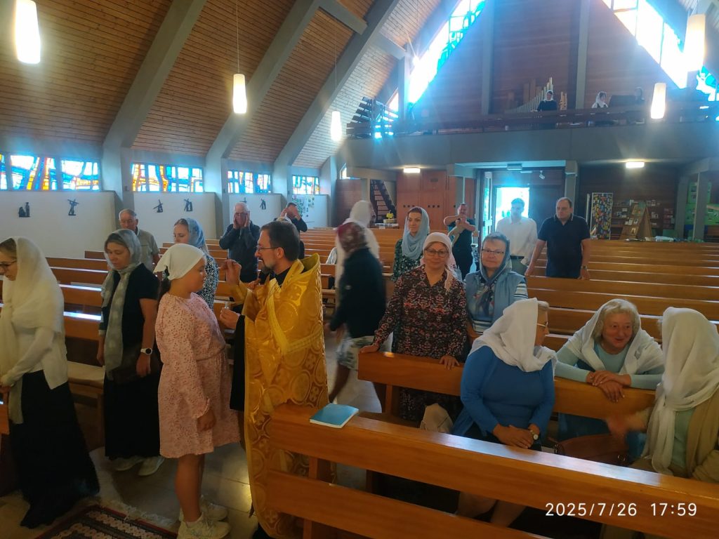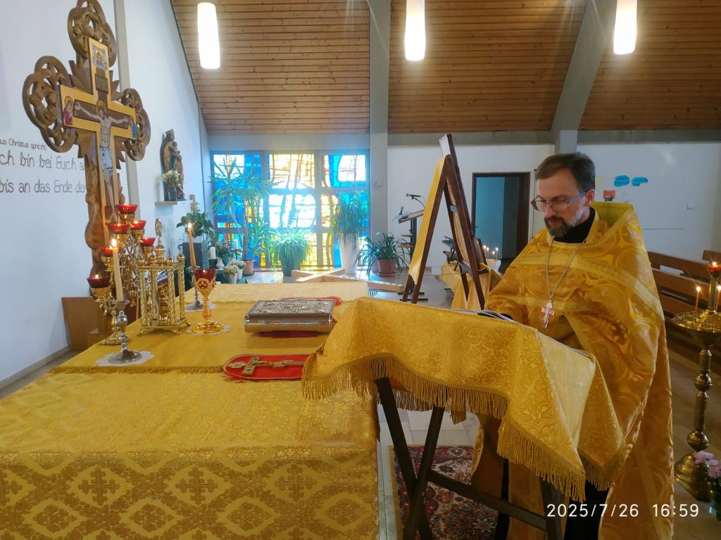 27 июля с. г., в Неделю 7-ю по Пятидесятнице, в приходе Сретения Господня г. Алена состоялась Божественная литургия. По благословению настоятеля ее совершил иерей Валентин Усачёв (г. Ульм). В этот день Святая Церковь совершает память святых отцев шести Вселенских Соборов.