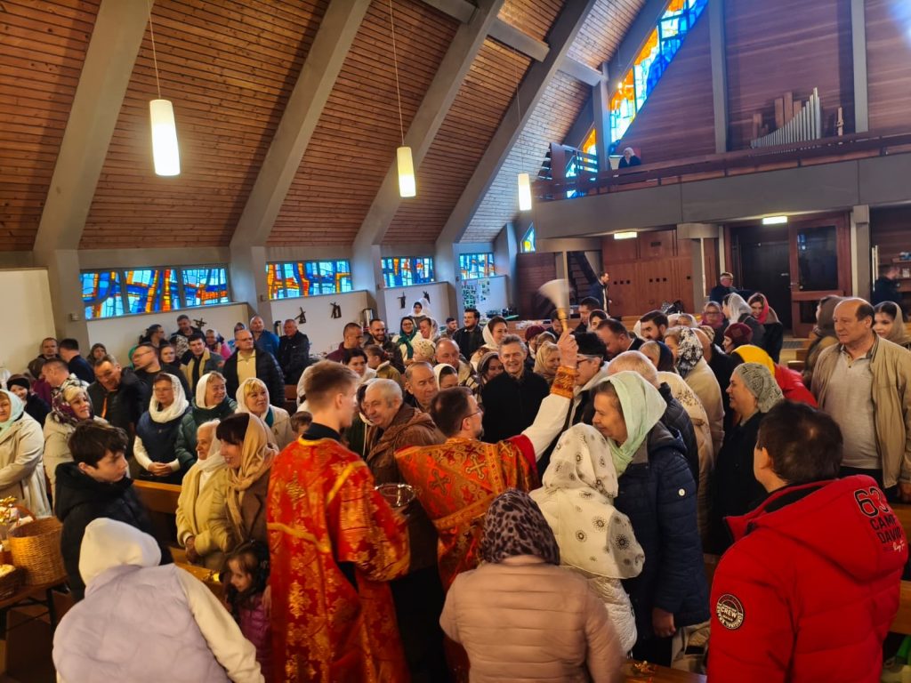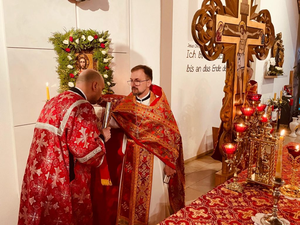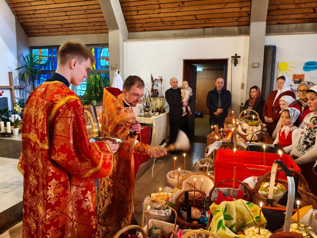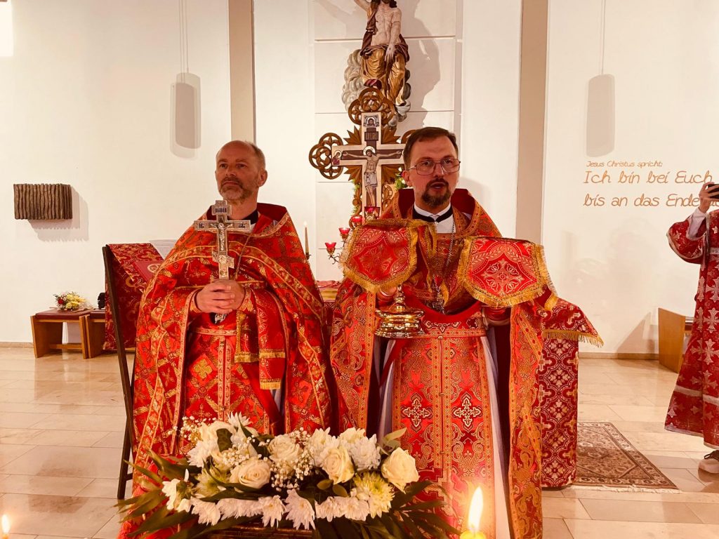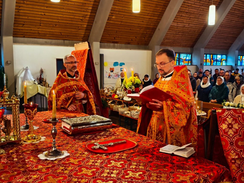 Божественную литургию, по благословению настоятеля, возглавил иерей Валентин Усачёв (г. Ульм) в сослужении протоиерея Анатолия Москаленко. Богослужебные песнопения благочестиво исполнил приходской хор под руководством регента Марины Мецлер, украсив богослужение проникновенным пением.