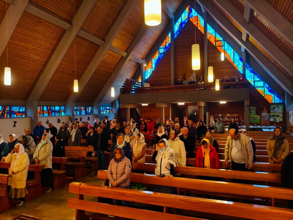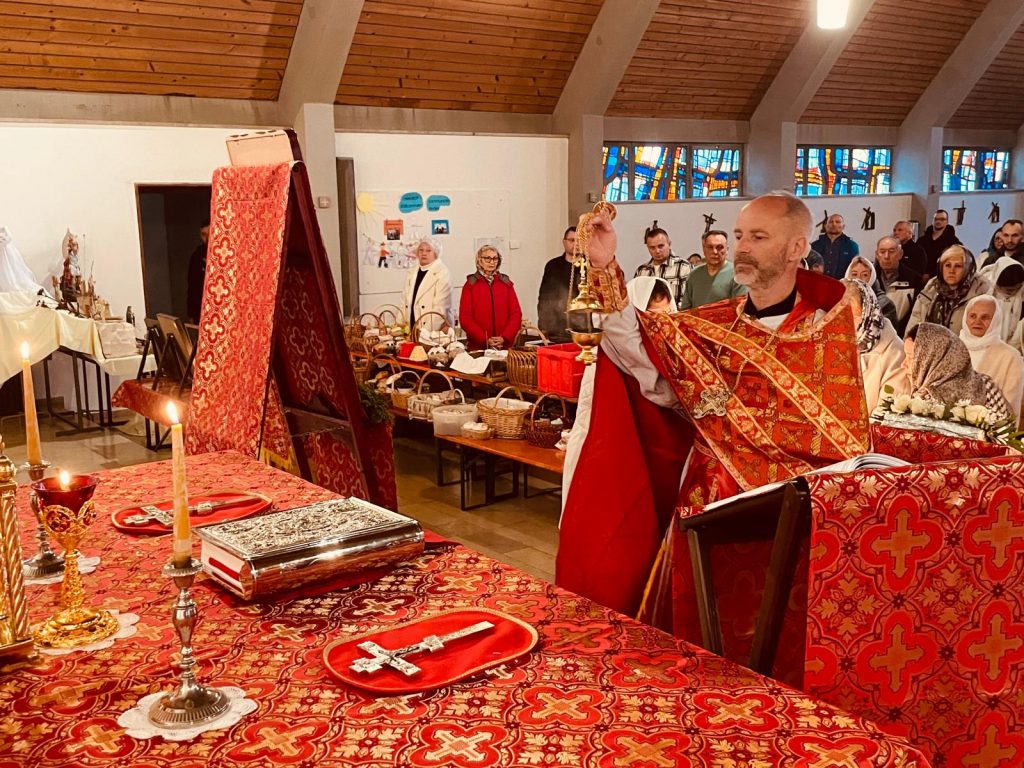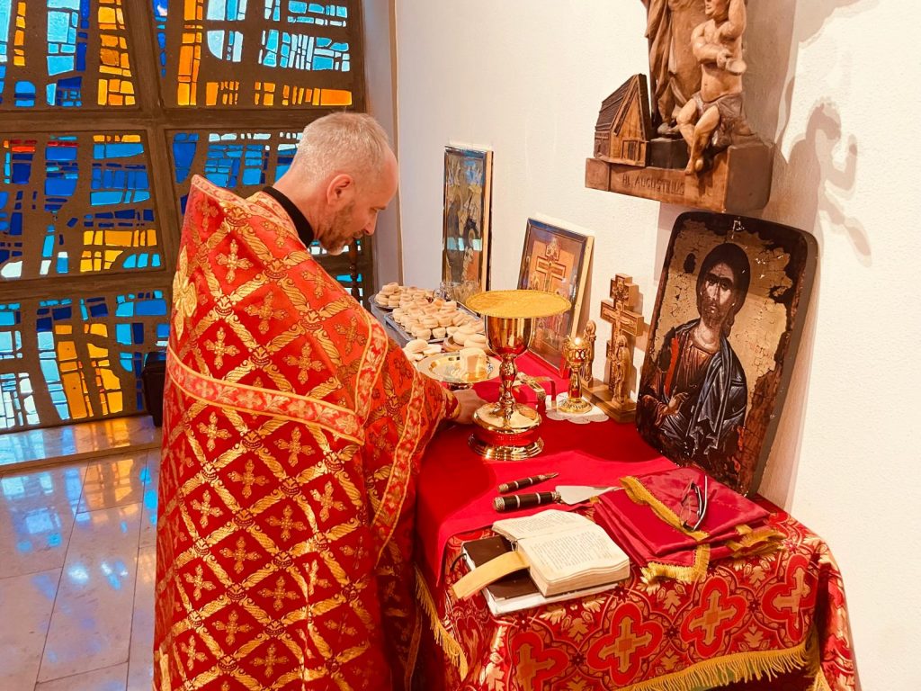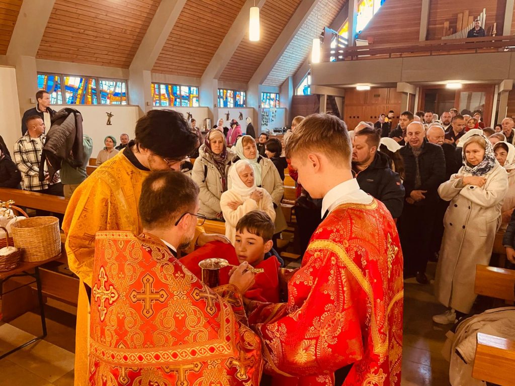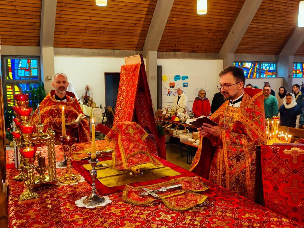 Божественную литургию, по благословению настоятеля, возглавил иерей Валентин Усачёв (г. Ульм) в сослужении протоиерея Анатолия Москаленко. Богослужебные песнопения благочестиво исполнил приходской хор под руководством регента Марины Мецлер, украсив богослужение проникновенным пением.
