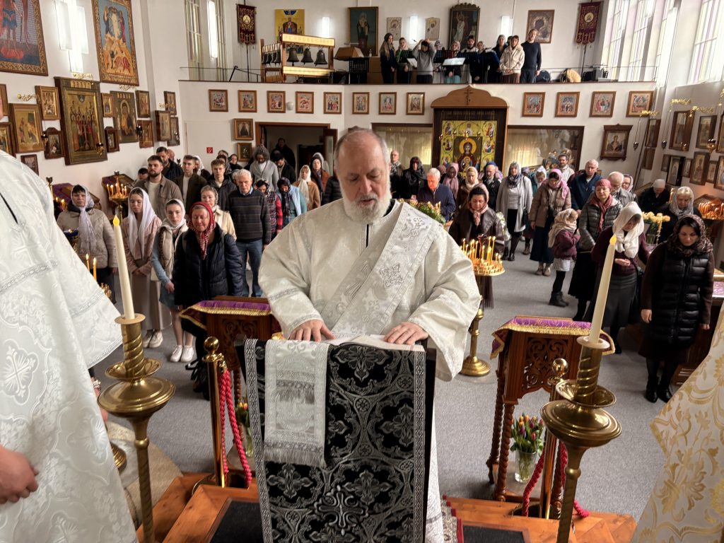 21 марта 2026 г., в субботу 4-й седмицы Великого поста, в храме иконы Божией Матери «Знамение» Курская-Коренная прихода мчч. Валентина и Пасикрата в г. Ульме была совершена Божественная литургия. В этот день Святая Церковь празднует память иконы Божией Матери «Курская-Коренная» — один из престольных праздников Знаменского храма г. Ульма.
