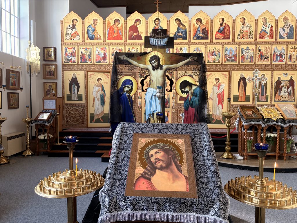 Вечером 9 апреля с. г. в Знаменском храме была совершена утреня Великого Пятка с чтением 12-ти Евангелий Святых Страстей Господа нашего Иисуса.
