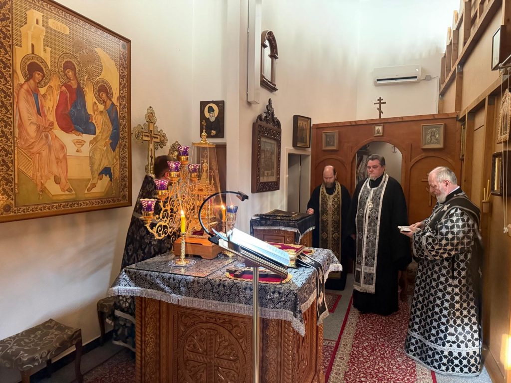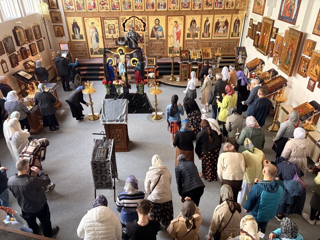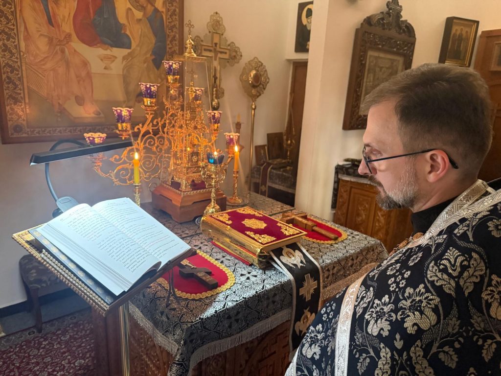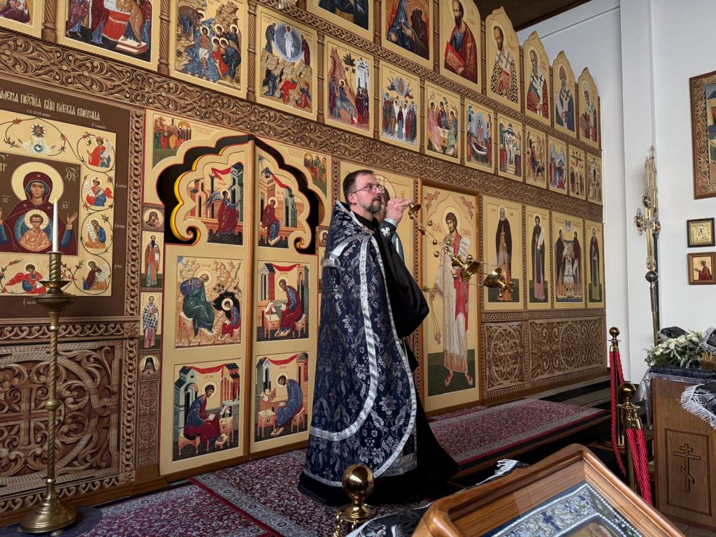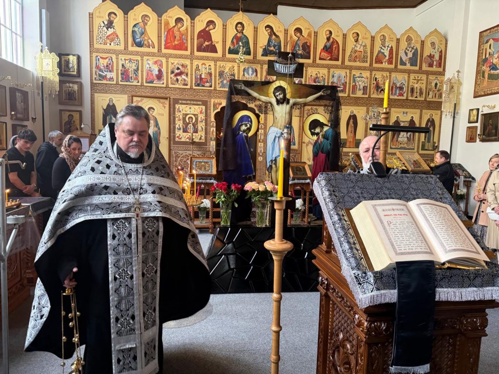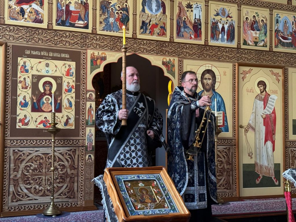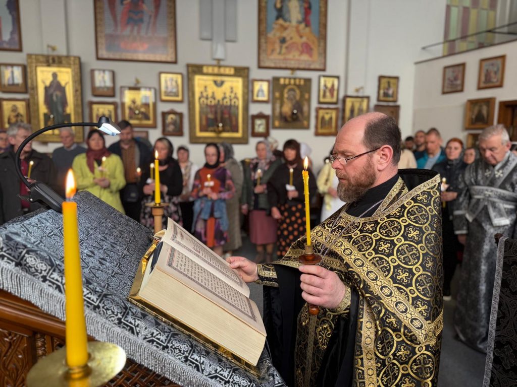 Богослужение возглавил настоятель храма игумен Максим (Шмидт) в сослужении протоиерея Григория Крочака, иерея Валентина Усачёва и диакона Сергия Гофсеца. За литургией пел мужской хор под руководством протодиакона Антония Смолина.