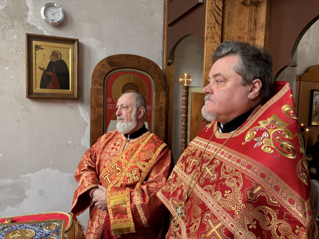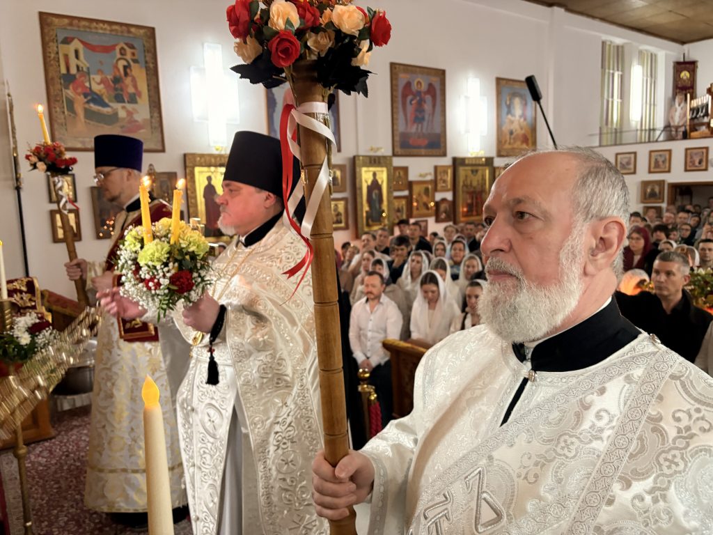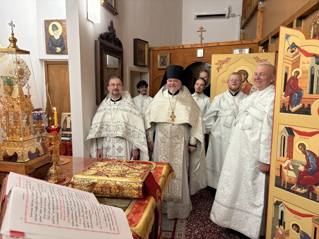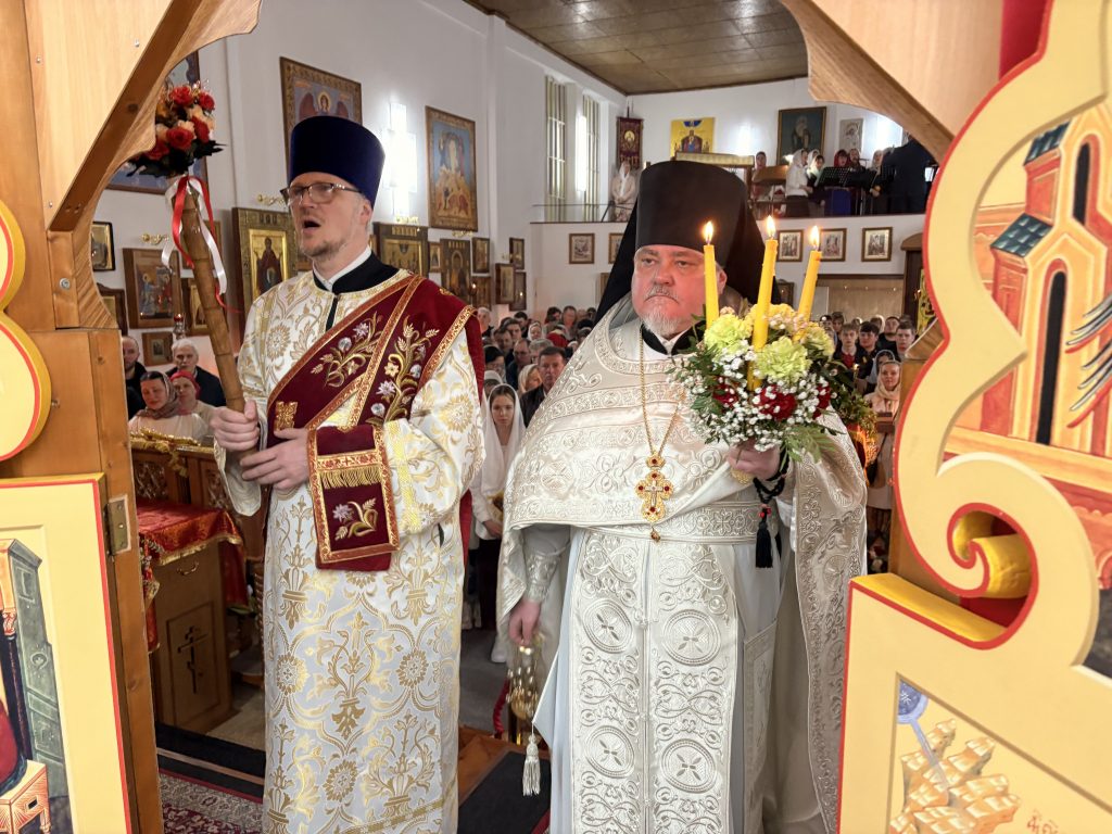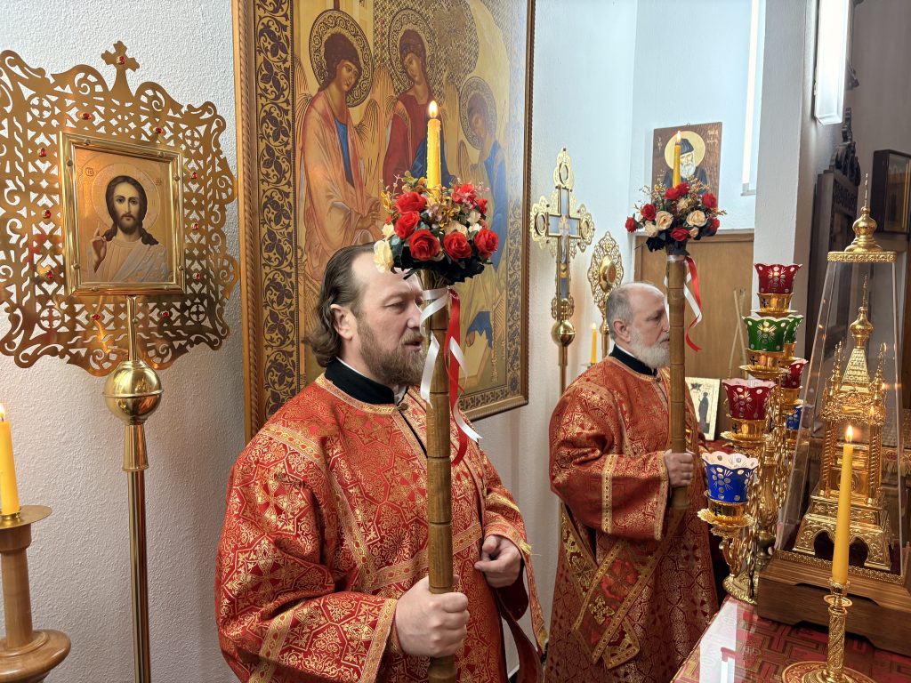 Праздничное богослужение совершил настоятель храма игумен Максим (Шмидт) в сослужении иерея Валентина Усачёва и диакона Сергия Гофсеца. За вечерней пел клиросный хор под руководством регента Ларисы Шукман.