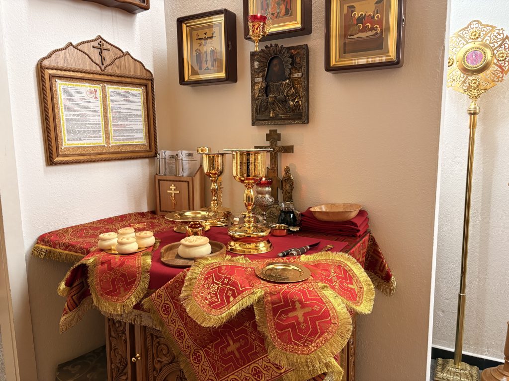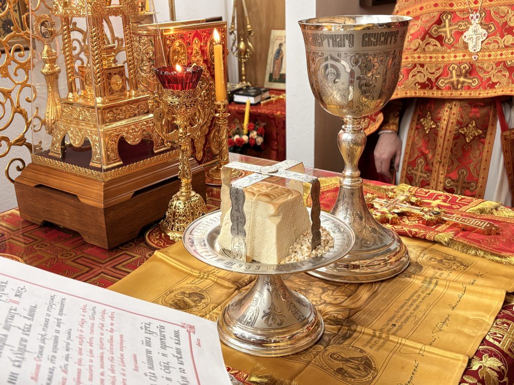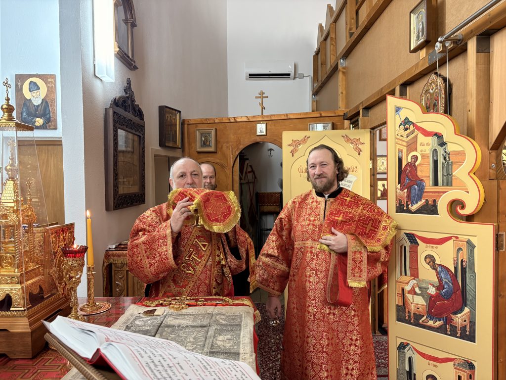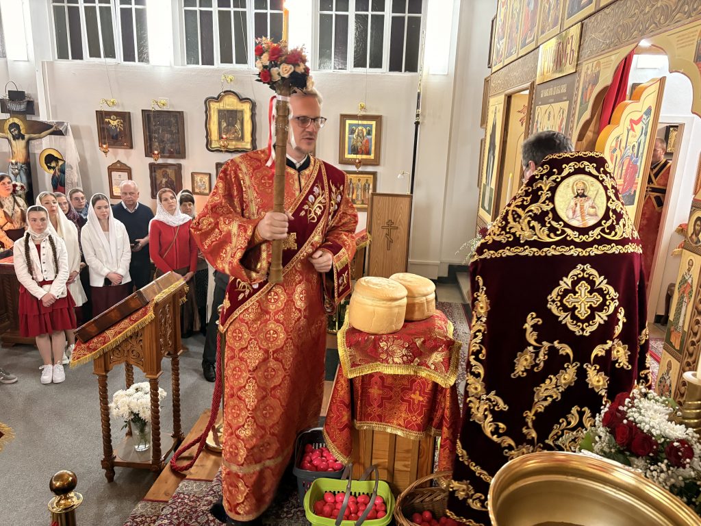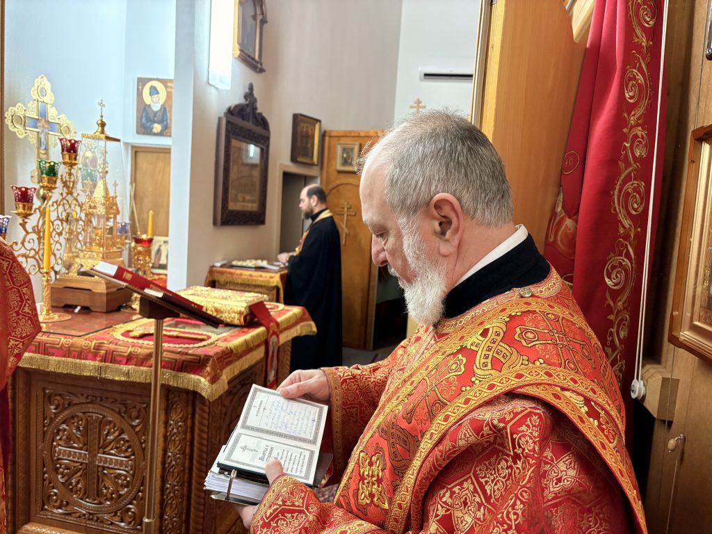Праздничное богослужение совершил настоятель храма игумен Максим (Шмидт) в сослужении иерея Валентина Усачёва и диакона Сергия Гофсеца. За вечерней пел клиросный хор под руководством регента Ларисы Шукман.