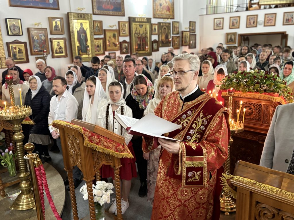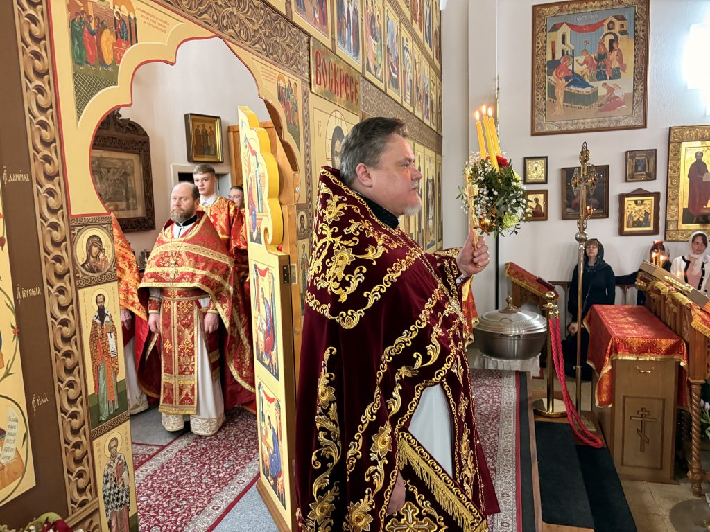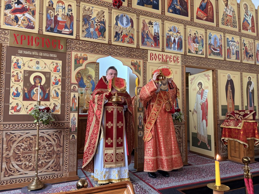Утром 12 апреля, в день Светлого Христова Воскресения Божественную литургию совершил настоятель прихода игумен Максим (Шмидт) в сослужении диаконов Сергия Гофсеца и Евгения Кика. За литургией пел детско-юношеский хор под руководством регента Марины Голенко.